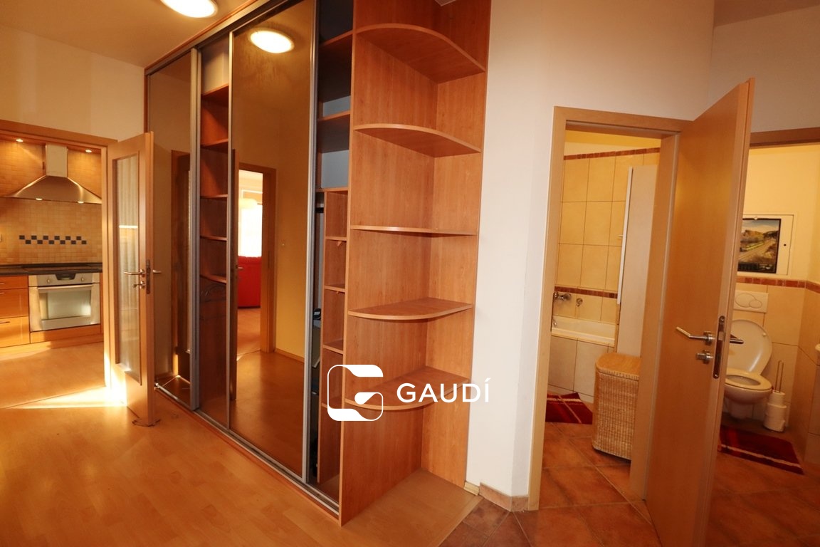 Byt je velmi prakticky zařízen převážně dřevěným nábytkem, vestavěné skříně na míru v předsíni a ložnici viz. foto. Byt poskytuje mnoho úložného prostoru.