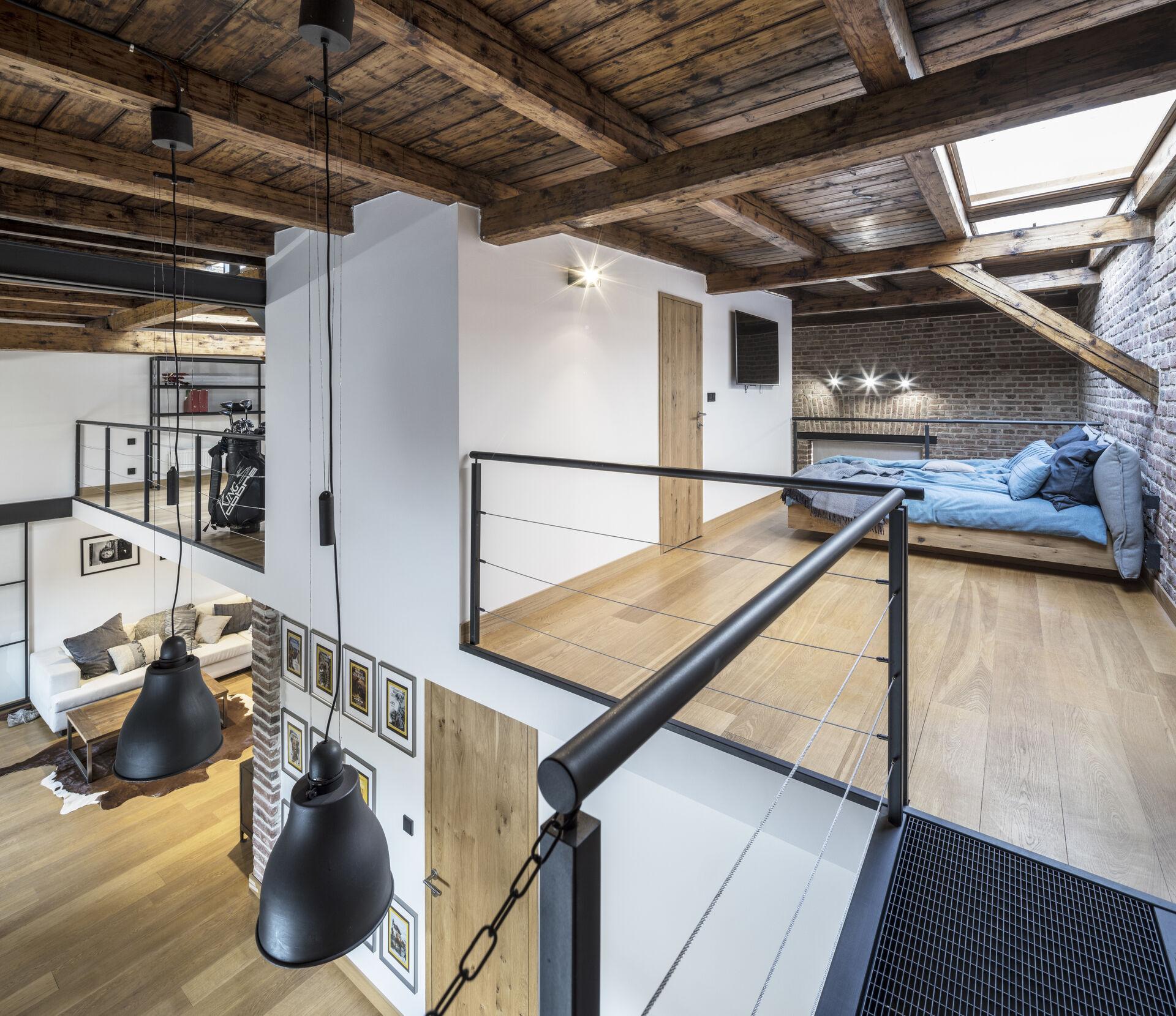 Pronájem loftového bytu, 180 m², velká střešní terasa 70 m², garážové stání, Praha - Nusle,