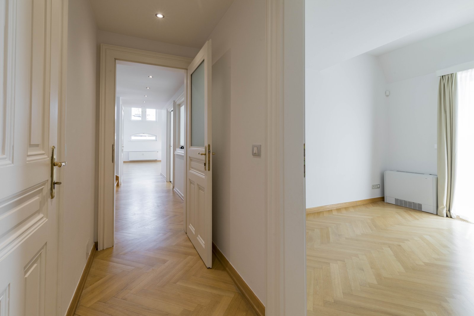 Nabízíme k pronájmu reprezentativní mezonetový byt 5+1 s terasou v 5. a 6. patře renovovaného neorenesančního činžovního domu s výtahem ve vyhledávané lokalitě Prahy 5 na rozhraní Malé Strany a Smíchova. Byt má celkovou plochu 286 m² a nabízí ve spodním patře vstupní předsíň, prostorný obývací pokoj, plně vybavenou kuchyň se spotřebiči (sklokeramická varná deska, trouba, lednice, myčka a mikrovlnná trouba), 1 ložnici s vlastní koupelnou s vanou, sprchou, toaletou a bidetem, šatnou a vstupem na balkon. Další dvě ložnice, obě se vstupem na balkon, 1 koupelnu s vanou, toaletou a bidetem, malou šatnu a komoru. V horním patře je otevřená místnost s možností využití jako ložnice pro hosty nebo herna pro děti, 1 koupelna se sprchou, toaletou a bidetem, prádelna s pračkou a sušičkou a terasa o velikosti 35 m² s pergolou, posezením s dechberoucím výhledem na Petřín a Pražský hrad. Byt je částečně zařízený a k jeho vybavení patří jídelní stůl a židle, postel a vestavěná skříň v ložnici, vybavená šatna, závěsy, regály v koupelně, klimatizace, alarm, videotelefon, bezpečnostní dveře, dřevěné parkety, mramorové podlahy v koupelnách, plynové topení. Na terase je venkovní nábytek a pergola, k rostlinám na terase je zaveden i systém zavlažování. V domě je denní recepce a možnost využít služeb údržbáře. K bytu náleží sklep. Perfektní poloha naproti Petřínským sadům, v docházkové vzdálenosti od Pražského hradu, Karlova mostu, Malostranského náměstí. V okolí domu je veškerá občanská vybavenost : restaurace, kavárny, bistra, obchody, zdravotnická zařízení. Jen pár kroků od Francouzského lycea, stanice tramvaje, metra Anděl a nákupního centra Nový Smíchov. Autem blízký nájezd na Pražský okruh a dálniční síť. Parkovací místo v garážích na zakladači vhodné pro nízká auta s výškou do 150 cm přímo v domě za extra poplatek 3.900 Kč + DPH/měsíc. Pro větší vozy je možné využít parkování v Drtinově ulici za extra poplatek. K bytu patří sklep. K dispozici ihned. Nájemce bytu má možnost stát se za poplatek členem wellness klubu Elliptico v rezidenci Ellipsis v Holečkově ulici.