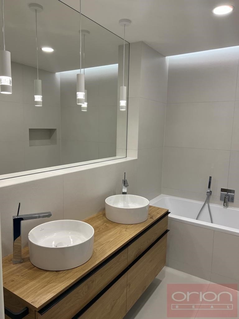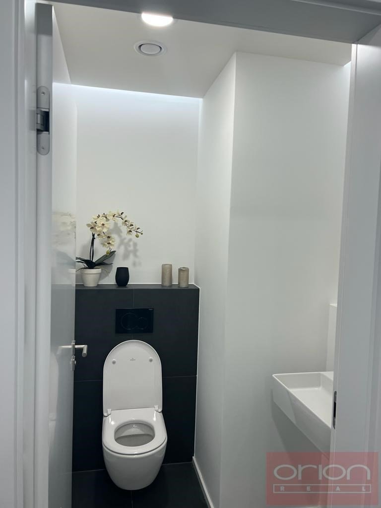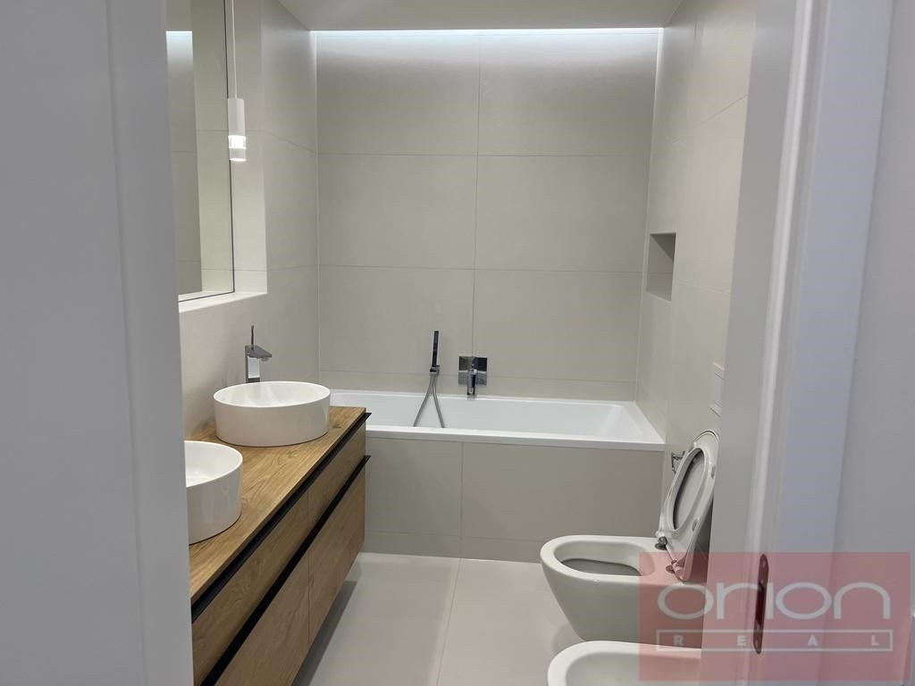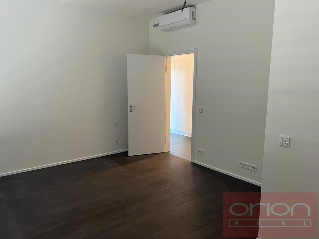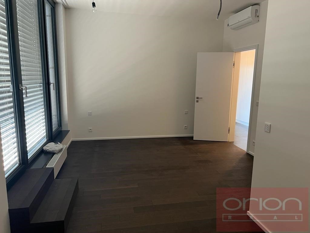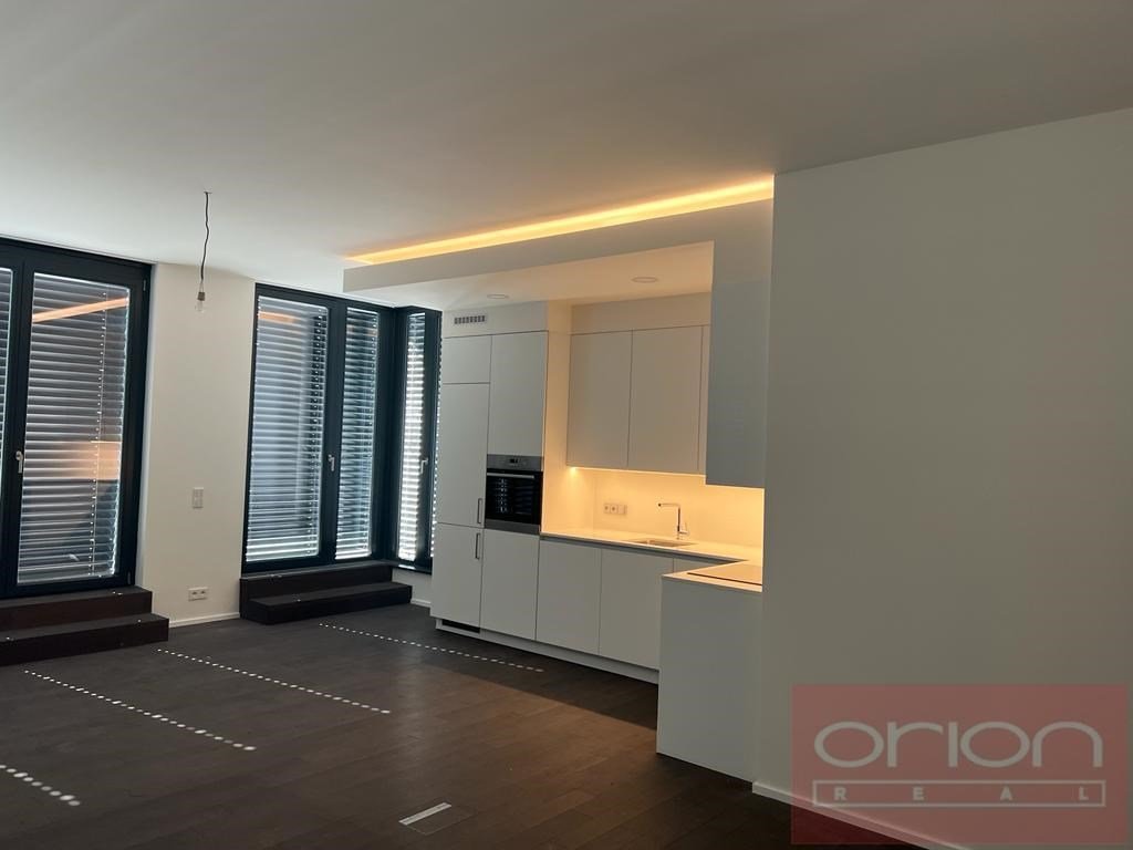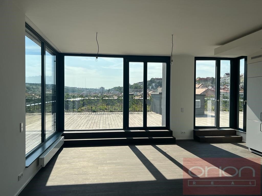 Nabízíme k pronájmu nový, nadstandardně vybavený byt 3+kk (111 m2) s prostornou terasou, situovaný v 7. patře moderního rezidenčního komplexu Neugraf. Z terasy o velikosti 131 m2 se nabízí nádherný výhled na Prahu i na protilehlý zalesněný vrch Bertramka. Dispozice bytu zahrnuje vstupní halu, světlý obývací pokoj s kuchyňským koutem a krbem se vstupem na terasu, která obklopuje byt ze všech stran, dvě ložnice (z toho jedna s vlastní šatnou a koupelnou), druhou koupelnu a samostatnou toaletu. Jedna koupelna je vybavena vanou, WC a bidetem, druhá moderním sprchovým koutem a WC. Byt je orientován na jihozápad, díky velkoformátovým oknům je velmi světlý. Standard zahrnuje masivní dřevěné podlahy, velkoformátovou dlažbu, centrální vytápění, podlahové topení v koupelnách a klimatizaci v ložnicích i obývacím pokoji. Samozřejmostí jsou vestavěné skříně s dostatkem úložného prostoru. Kuchyň je plně vybavena spotřebiči (myčka, lednice s mrazákem, indukční varná deska, elektrická trouba). Byt disponuje moderními technologiemi včetně smart ovládání přes LCD panel, rekuperace vzduchu a kamerového zabezpečovacího systému napojeného na recepci objektu. Rezidenti mohou využívat wellness zónu a společnou terasu s grilem. V ceně nájmu je zahrnuto jedno garážové stání a sklep. Možnost pronájmu druhého parkovacího místa za poplatek.