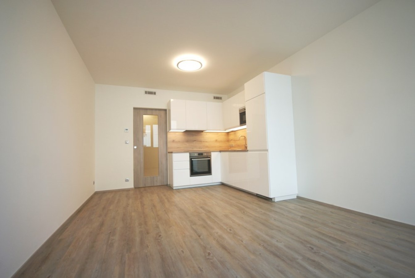Nabízíme k pronájmu nezařízený 1+kk o výměře 35,8m2. 1+kk se nachází v 1. patře novostavby. V přízemí domu se nachází recepce s 24h službou, 4 výtahy, upravený vnitroblok - do budoucna vznikne kavárna. 1+kk je vybaven moderní kuchyňskou linkou s vestavěnými spotřebiči (indukční deska, horkovzdušná trouba, lednice s mrazákem, myčka na nádobí, mikrovlnná trouba). Dále v předsíni po celé délce stěny vestavěné šatní skříně se zrcadlovou stěnou, koupelna se sprchovým koutem, přípojkou na pračku a oddělenou toaletou. Podlahové vytápění, rekuperace vzduchu, alarm, video vrátný, bezpečnostní dveře. Byt se nachází u metra Českomoravská, tramvaj zastávky, OC Harfa, O2 aréna. Nájem 16.500,-Kč + služby 4.500,-Kč + elektřina bude převedena na nájemce. Kauce ve výši 21.000,-Kč a Provize RK ve výši jednoho nájmu + DPH. K nastěhování od května.