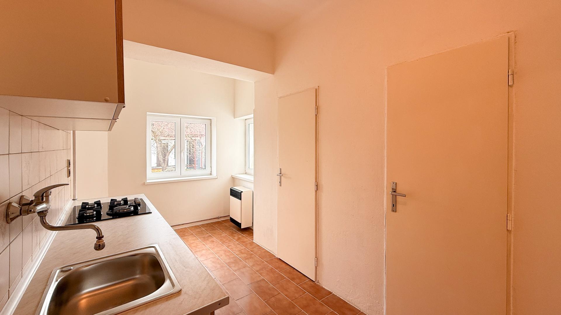 Nájemce neplatí provizi. Nabízíme k dlouhodobému pronájmu (cca 5 let) nezařízený byt v 1. NP rodinného domu v Pískové ulici v Praze 12 - Modřany. Dům se nachází v klidné rezidenční oblasti mezi dalšími rodinnými domy, tento pochází z počátku 20. století a je zasazen do příjemné zahrady, která je nájemci po dohodě k dispozici k užívání. Bytová jednotka je umístěna v 1. NP (zvýšené přízemí) a má výhled jak do zmíněné zahrady, tak do soukromého dvora. Prošel částečnou rekonstrukcí, kdy byly opraveny rozvody plynu, osazeny nové WAWky, prostory byly čistě vymalovány a vsazena plastová okna, která zajišťují minimální únik tepla a maximální izolaci zvukovou. Na podlahách je PVC a dlažba, v kuchyňské části je samostatné WC a koupelna se sprchovým koutem a elektrickým bojlerem se zásobníkem na teplou vodu. Byt nabízí základní, nicméně plně funkční standard. Nečekejte zde žádné designové, ani technologické výstřelky. Co však nabídnout může, je velká porce klidu, zahrada, spousta světla a fajn sousedy. Vítaní jsou majitelé vychovaných domácích zvířat, rodiny. 3 minuty od domu je zastávka tramvaje Čechova čtvrť, zastávka autobusu, do 5 minut pěší chůze je i úřad MČ Praha 12, na nákupy lze zajet do nedalekého Kuflandu, OC Novodvorská Plazza, v okolí jsou restaurace. Pro milovníky přírody je kousek Vltava, za domem Modřanská rokle. Nájem 19.000,- služby 600,-/osoba, + elektřina (cca 1.500,-) + plyn (cca 2.000,-). Provizi nájemce neplatí.