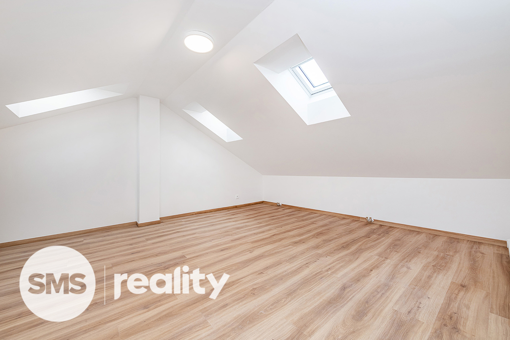 • Patro: místnost se skosenými stropy, neoddělená dveřmi od schodiště a vlastní druhou toaletou s umyvadlem.