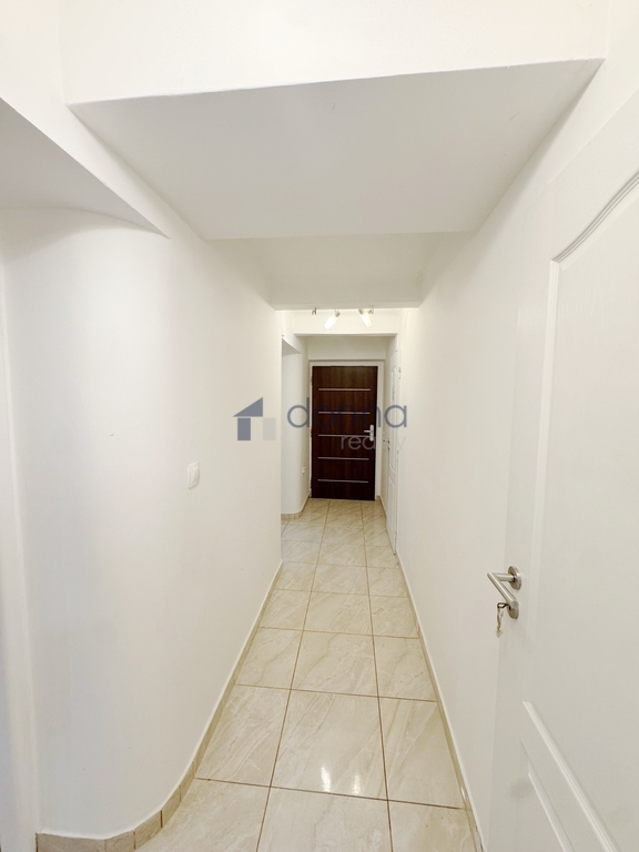 Byt se nabízí bez nábytku - je zde kuchyňská linka se spotřebiči - sporák, digestoř, lednice.