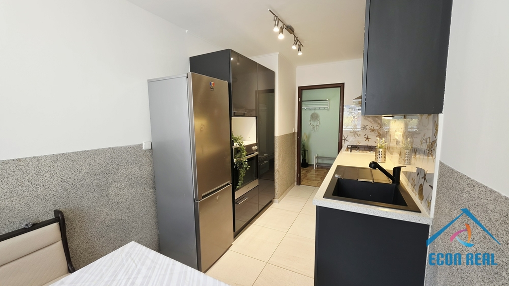 Obě ložnice jsou neprůchozí a jejich okna směřují do klidného, zeleného vnitrobloku. Kuchyň je zařízena kuchyňskou linkou v moderním lesklém designu s vestavěnými spotřebiči (el. trouba, nová varná plynová deska, myčka), dále je k dispozici volně stojící lednice s mrazákem.