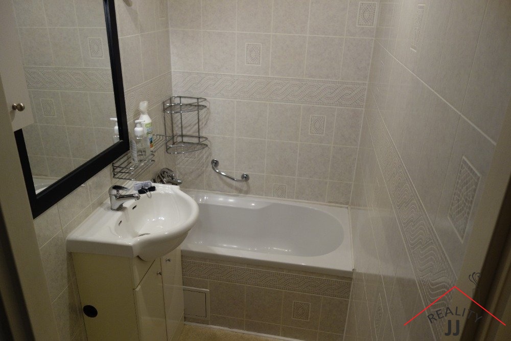 Byt po kompletní rekonstrukci je skutečně ve výborném stavu. Skládá se z chodby, obývacího pokoje s kuchyňským koutem, ložnice a koupelny a samostatného WC. Kuchyňská linka je vybavena sklokeramickou varnou deskou, digestoří, mikrovlnnou troubou a lednicí s mrazákem. Vybavení zahrnuje pouze šatní skříně v ložnici; velká šatní skříň, botník a věšák v předsíni,prádelník v obývacím pokoji. Ostatní vybavení dle dohody. V koupelně je umyvadlo se skříňkou,pračka , vana. Nové rozvody elektro, vinylové podlahy,el.žaluzie. Sklep-komora se nachází v mezipatře-5.NP.