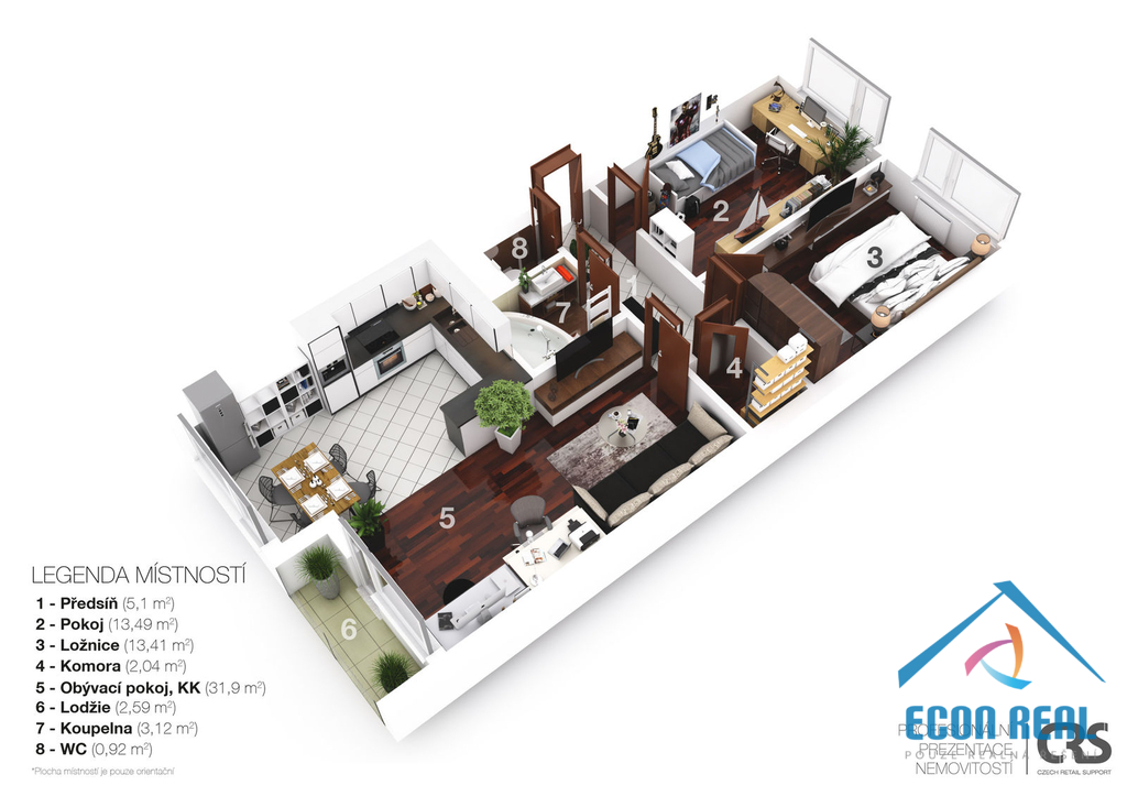 Dispozice bytu:3+kk