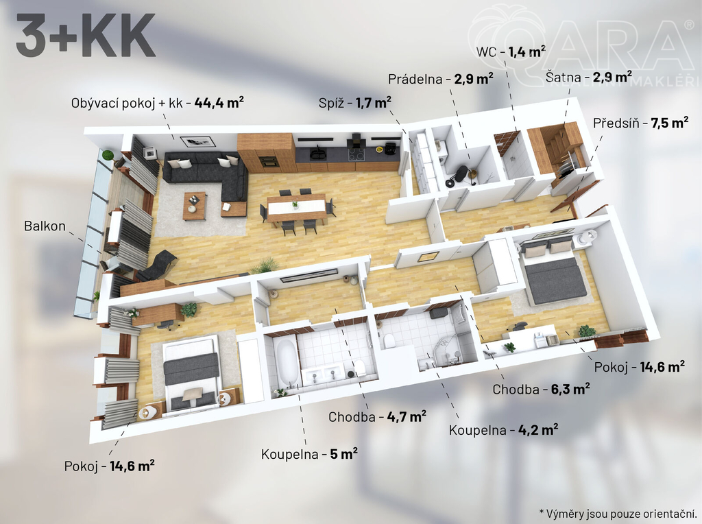 Pronájem prostorného bytu 3+kk, 117 m2 Rezidenční Park Baarova