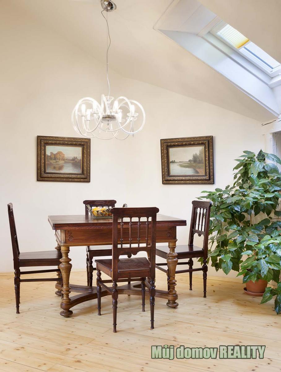 Nabízíme k dlouhodobému pronájmu krásný a útulný podkrovní byt 3+1 o výměře 90 m, který se nachází ve 4. patře udržovaného cihlového domu bez výtahu.
