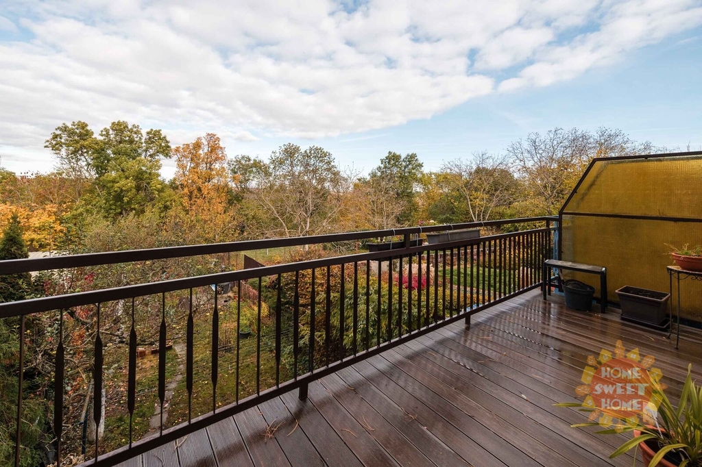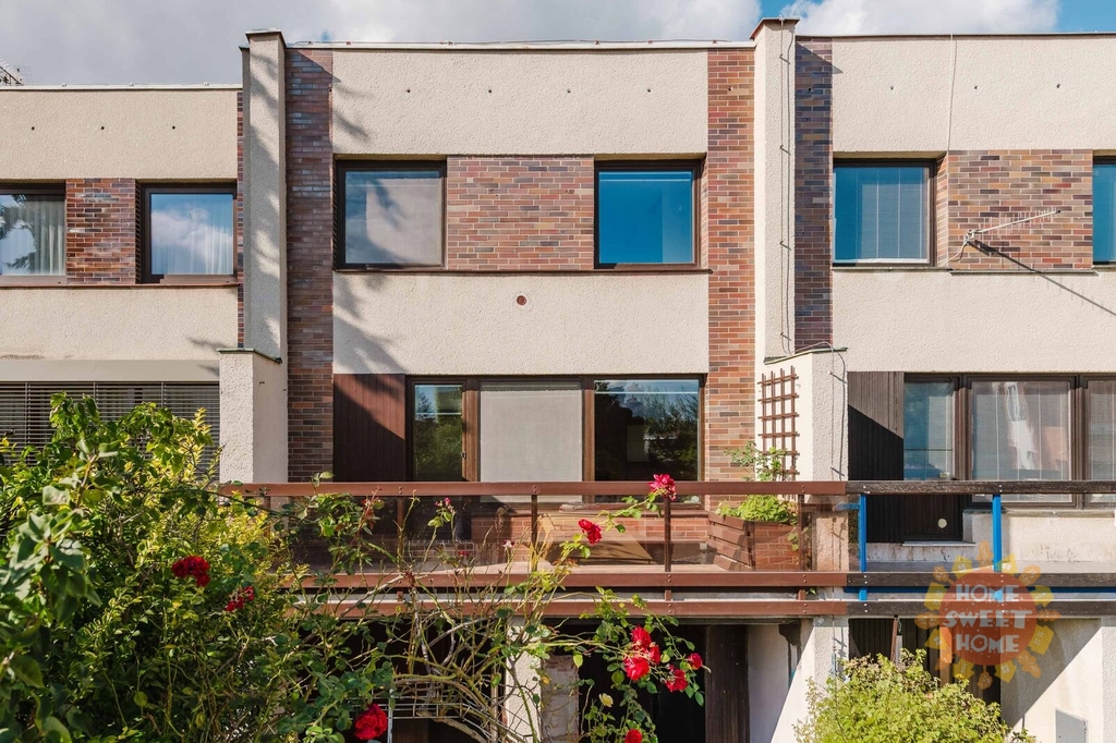 Dům má tři podlaží, dva balkóny a terasu se vstupem na zahradu, sklep, který se může využít třeba jako herna či posilovna. Na pozemku za domem se nachází klidná zahrada o velikosti 191 m, která poskytuje ideální prostor pro hry a odpočinek dětí. Zahrada, kde je i bazén je perfektní místo pro rodinná posezení a pikniky, zatímco děti si mohou užívat venkovních aktivit.