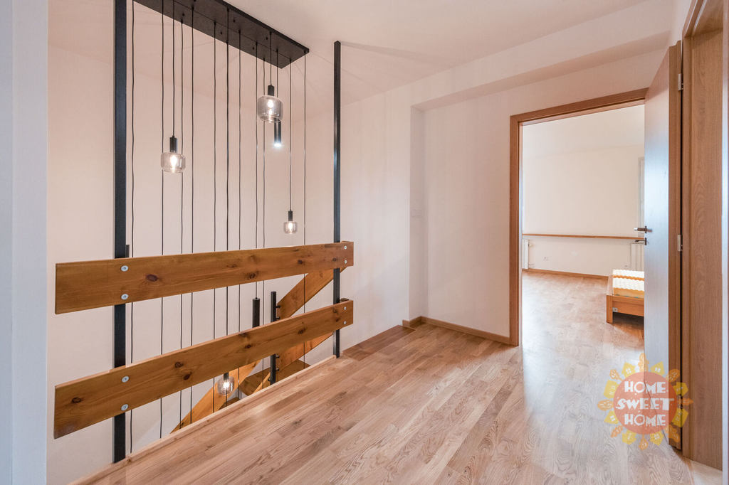 Interiér domu je řešen s důrazem na rodinnou atmosféru. Disponuje čtyřmi samostatnými ložnicemi, které poskytují soukromí pro děti i rodiče. Dále se v domě nacházejí tři koupelny s WC, což usnadňuje každodenní život velké rodiny. Vytápění je zajištěno elektrickým kotlem a radiátory, takže celé bydlení je příjemně vytápěné i v chladnějších měsících.