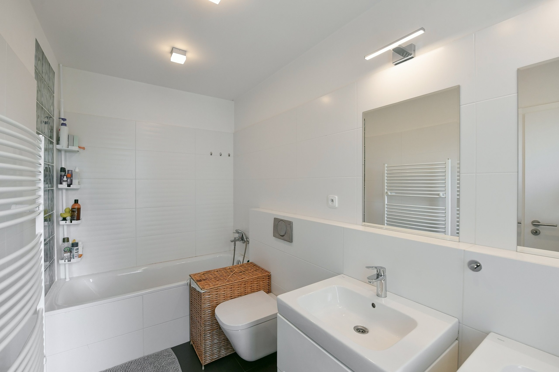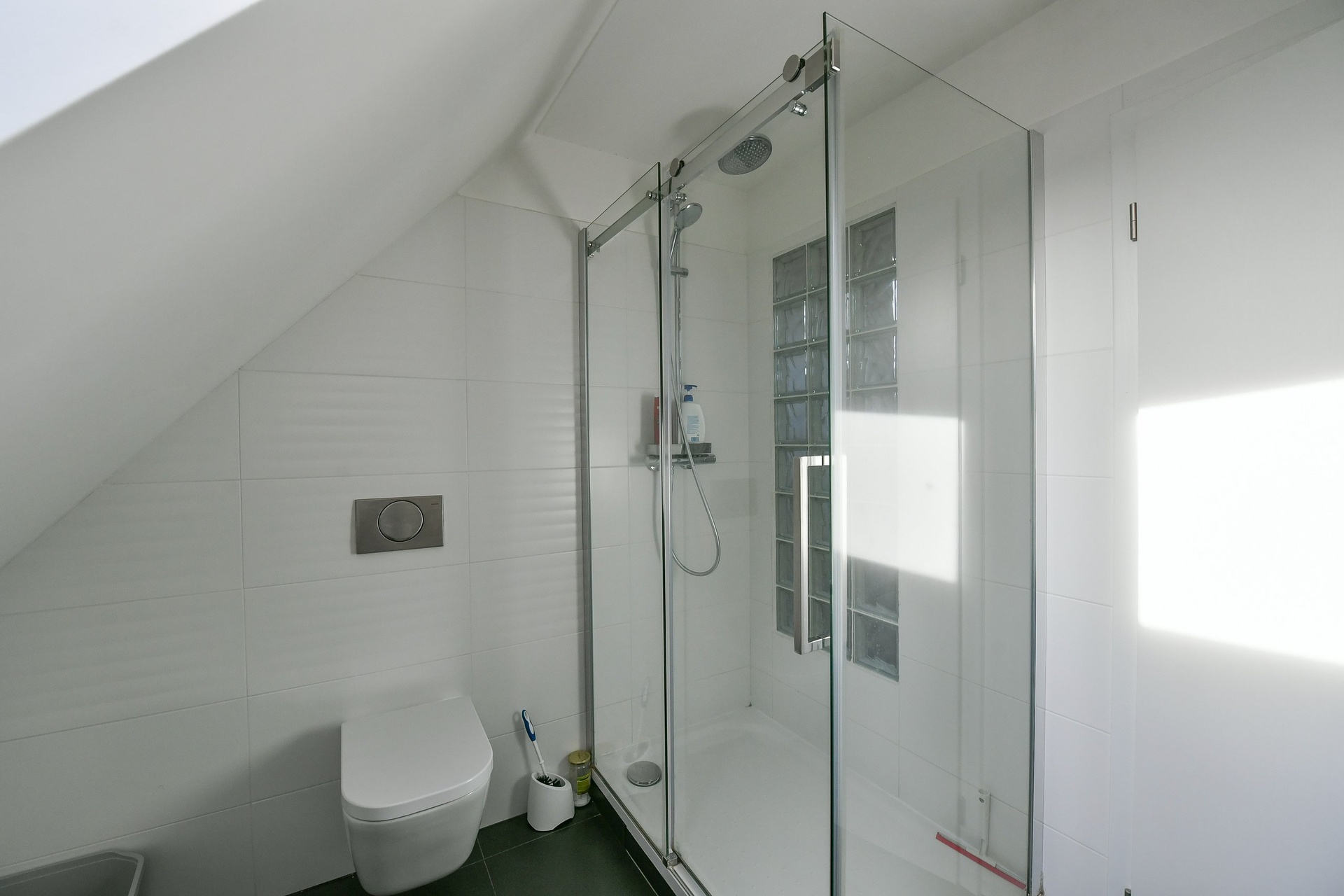 2. patro: prostorná ložnice s výhledem do klidného vnitrobloku, koupelna se sprchovým koutem a toaletou