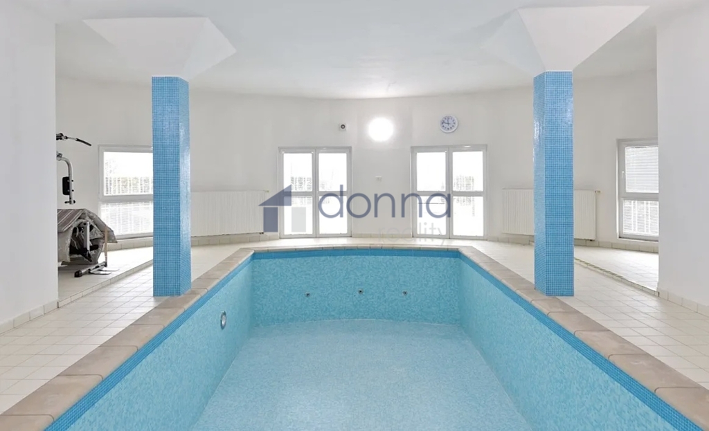 Multifunkční prostor s přímým vstupem na terasu a zahradu. V současné době je bazén zakryt, čímž vzniká plnohodnotná užitná plocha, kterou lze flexibilně využít jako showroom, open-space kanceláře, další pracovní zázemí nebo reprezentativní prostor pro firemní akce. Součástí je také sauna, sprcha, toaleta a technické zázemí.
