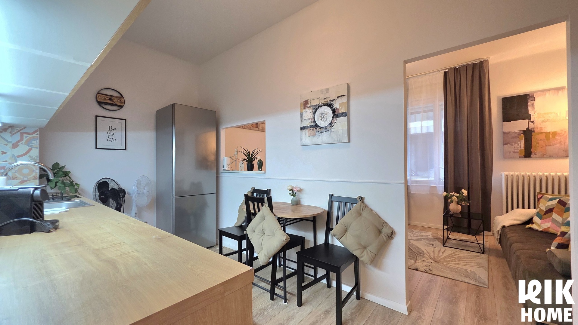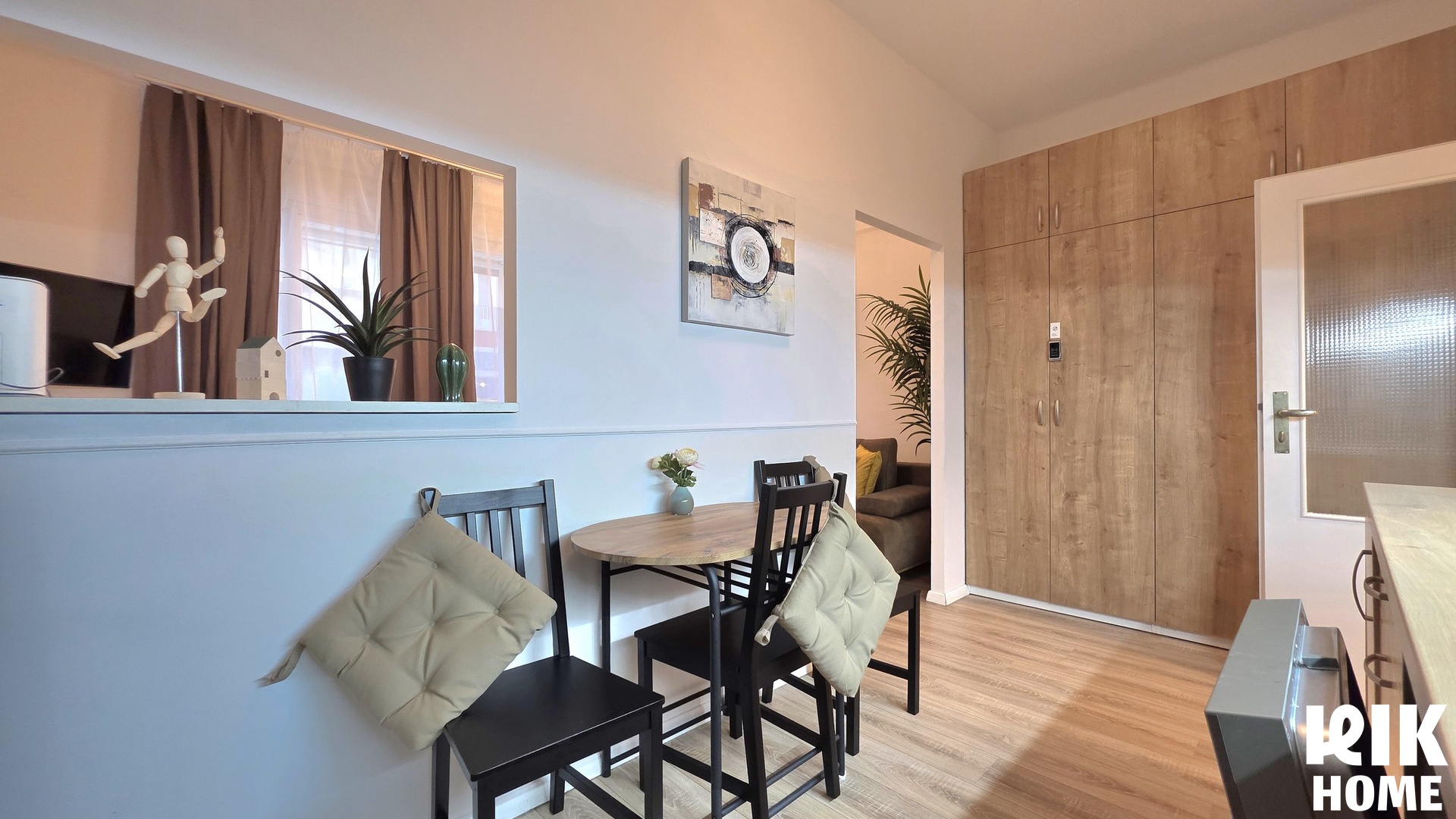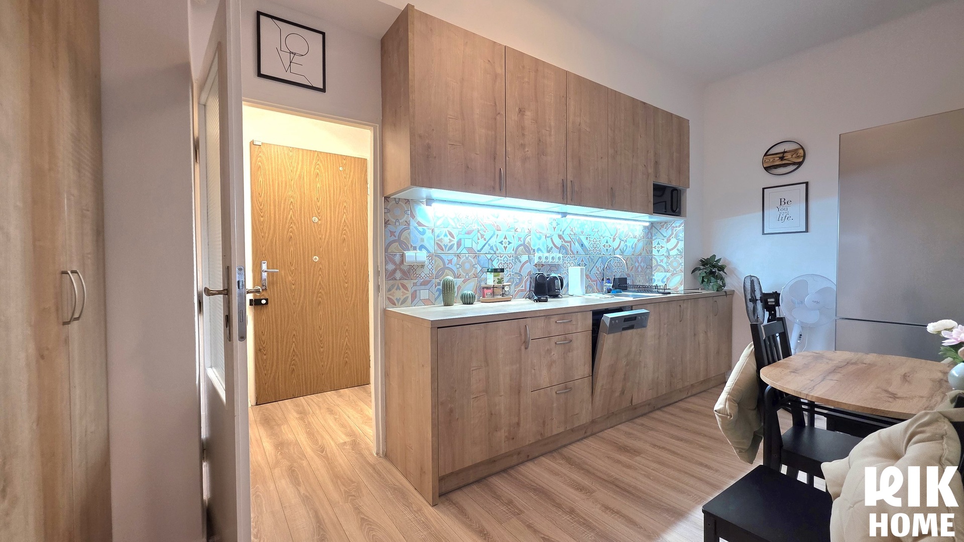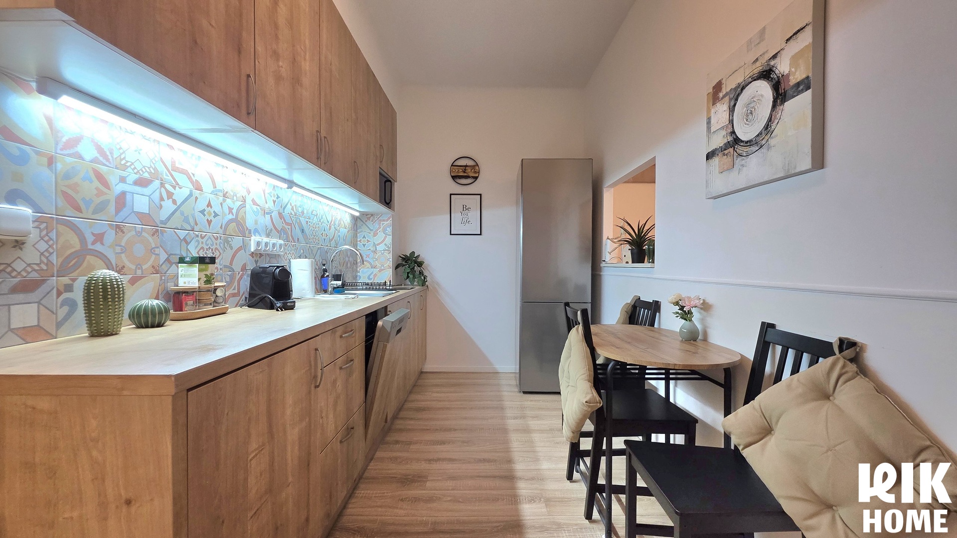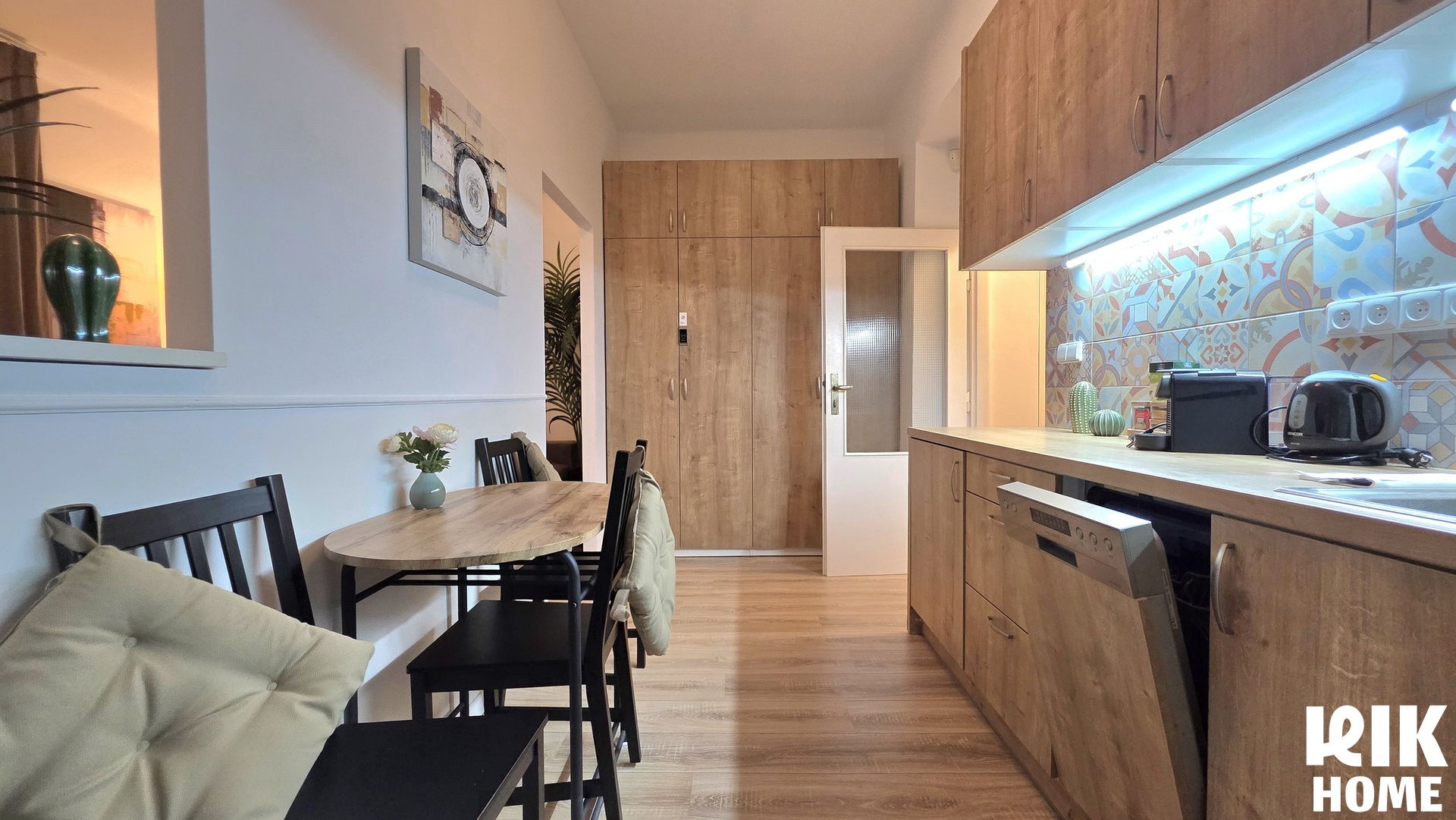 - Kuchyně: Oddělená místnost s moderní kuchyňskou linkou, spotřebiči (včetně myčky nádobí) a jídelním stolem.
