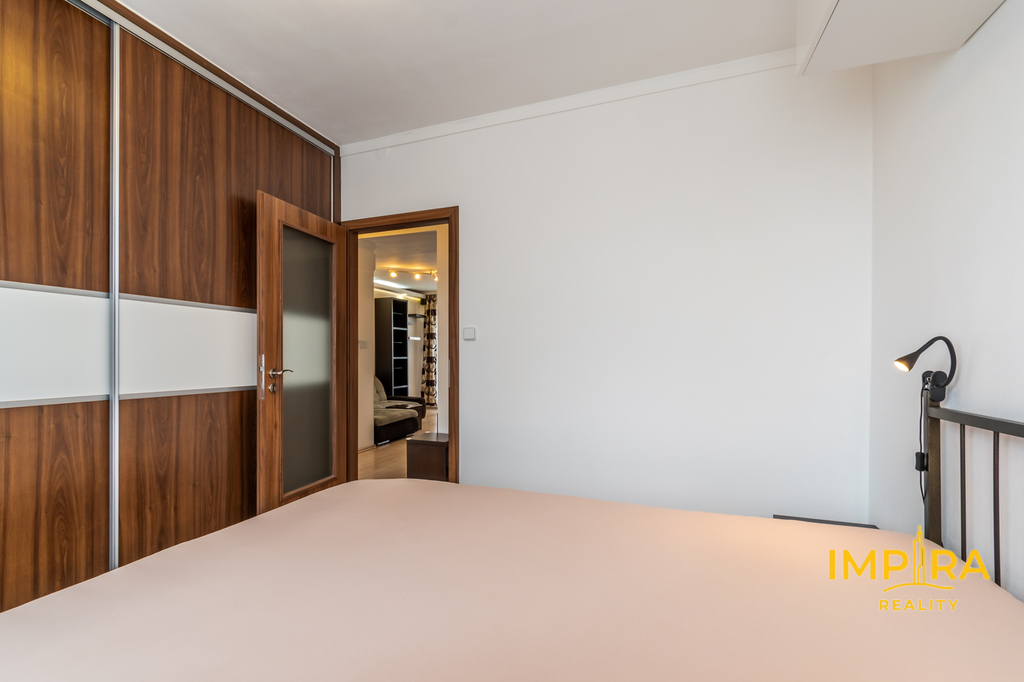 Tento moderně zrekonstruovaný byt v nejvyšším, 8. patře, se nachází v klidné ulici, ale zároveň je v bezprostřední blízkosti všech potřebných obchodů, restaurací a veřejné dopravy. Na metro je to pouhých 8 minut chůze a 6 minut chůze od OC Arkády. Byt je velmi prostorný, vybavený nábytkem na míru a nabízí Vám dostatek místa pro pohodlné bydlení.