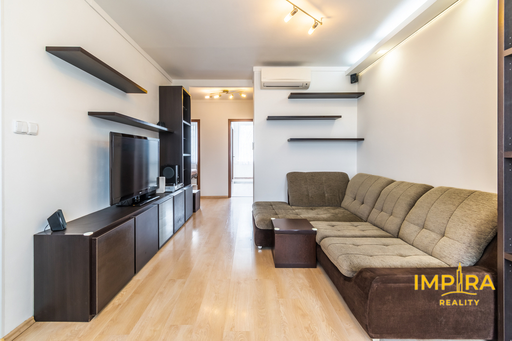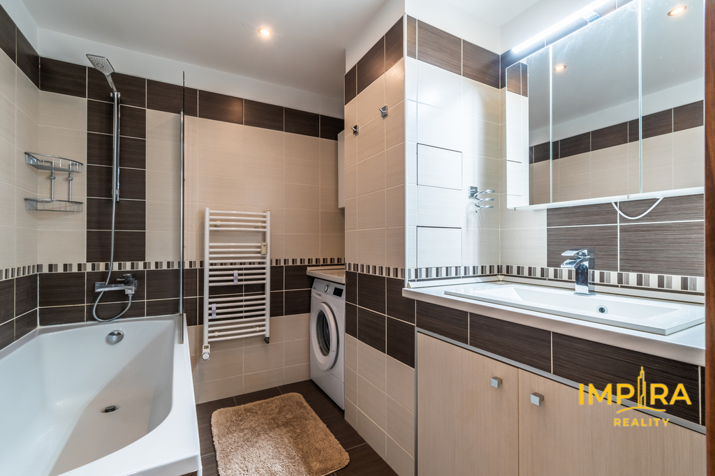 Naleznete zde moderní a plně vybavenou kuchyňskou linku, útulný obývací pokoj, dvě ložnice, koupelnu s vanou a oddělenou toaletu. Kromě toho má byt také zasklenou lodžii s nádherným výhledem do okolí, která Vám umožní relaxovat po náročném dni. Určitě oceníte i klimatizaci a předokenní rolety. Na společné chodbě naproti bytu budete mít ještě k dispozici další úložné prostory v podobě komory.