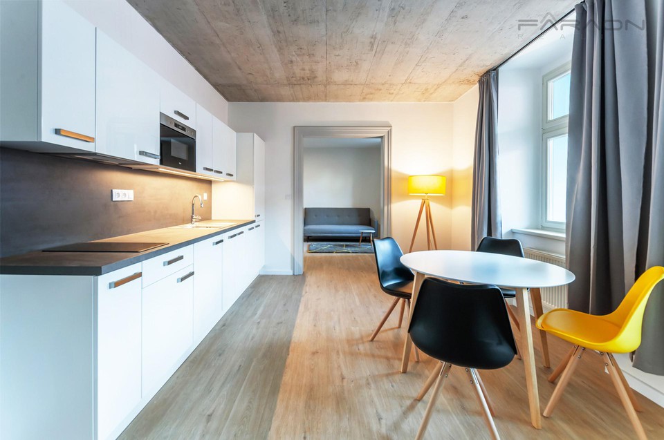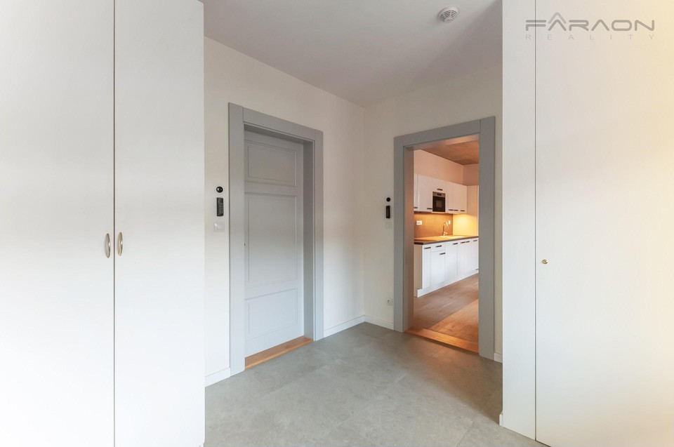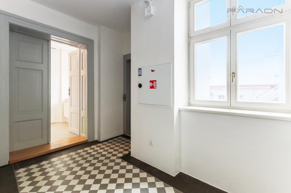 Zařízený, klidný byt 2+kk, 45 m2, ve druhém patře zrekonstruované historické pětipatrové budovy s výtahem, přímo naproti Karlínskému náměstí v nové a rychle se rozvíjející čtvrti Karlín.