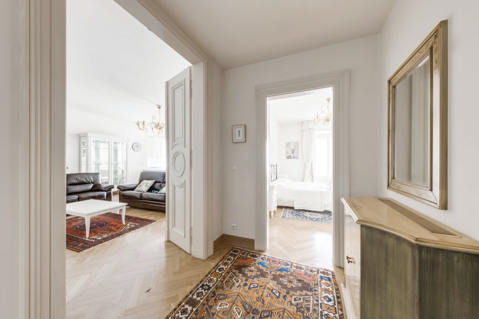 Nabízíme k pronájmu exkluzivní, plně zařízený byt 3+kk o rozloze 96 m², situovaný v 1. patře zrekonstruovaného činžovního domu s výtahem, soukromou zahradou, vyhřívaným bazénem a podzemními garážemi ve vyhledávané lokalitě Praha 2 - Vinohrady. Dispozice bytu zahrnuje vstupní halu, prostorný obývací pokoj s plně vybavenou kuchyní (včetně spotřebičů), dvě ložnice, koupelnu s vanou, umyvadlem a toaletou, a samostatnou toaletu. Byt se nachází ve velmi atraktivní a vyhledávané lokalitě pražských Vinohrad, s výbornou občanskou vybaveností a skvělou dopravní dostupností – stanice metra a tramvajové zastávky jsou jen pár kroků od domu, autobusová zastávka přímo před domem.