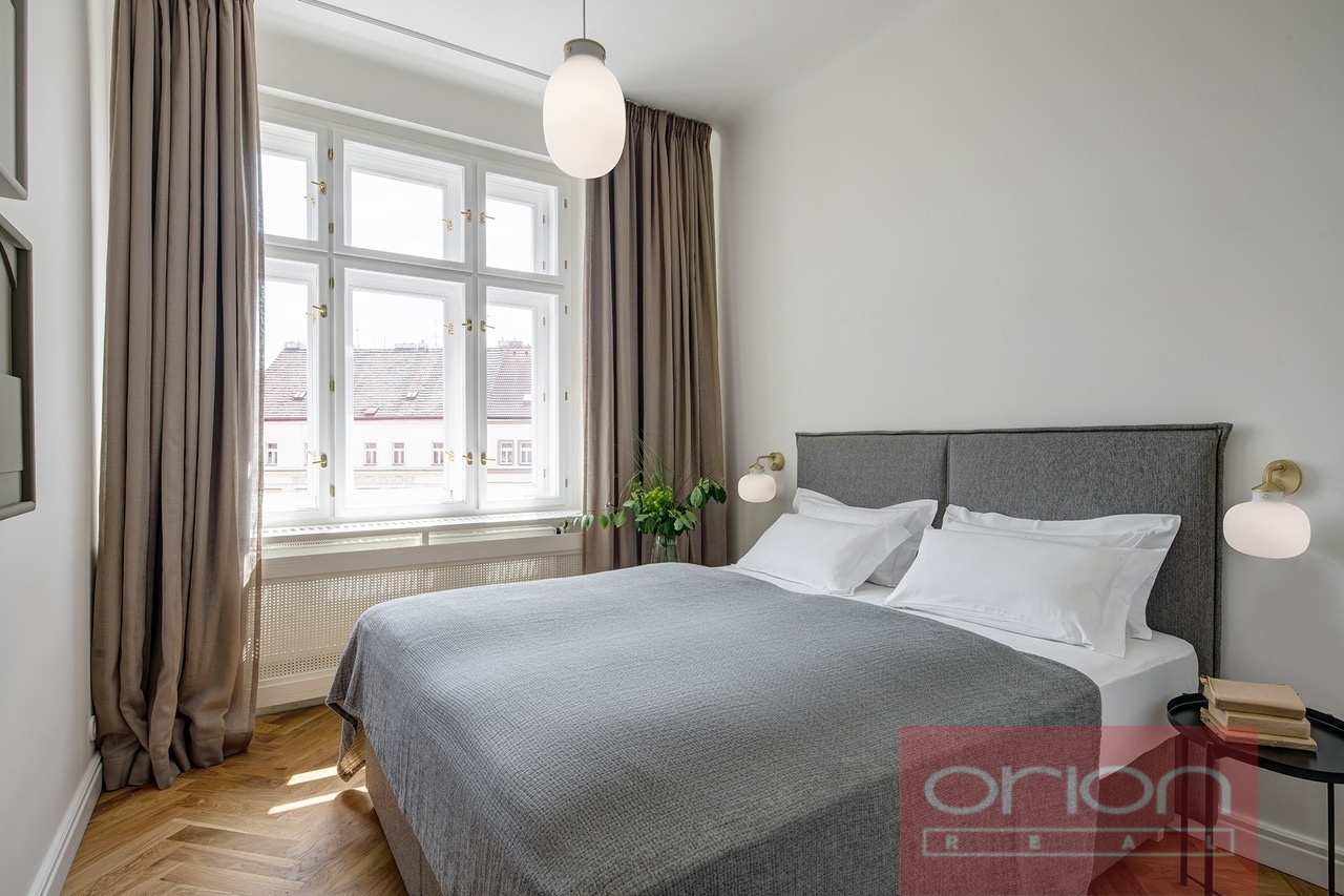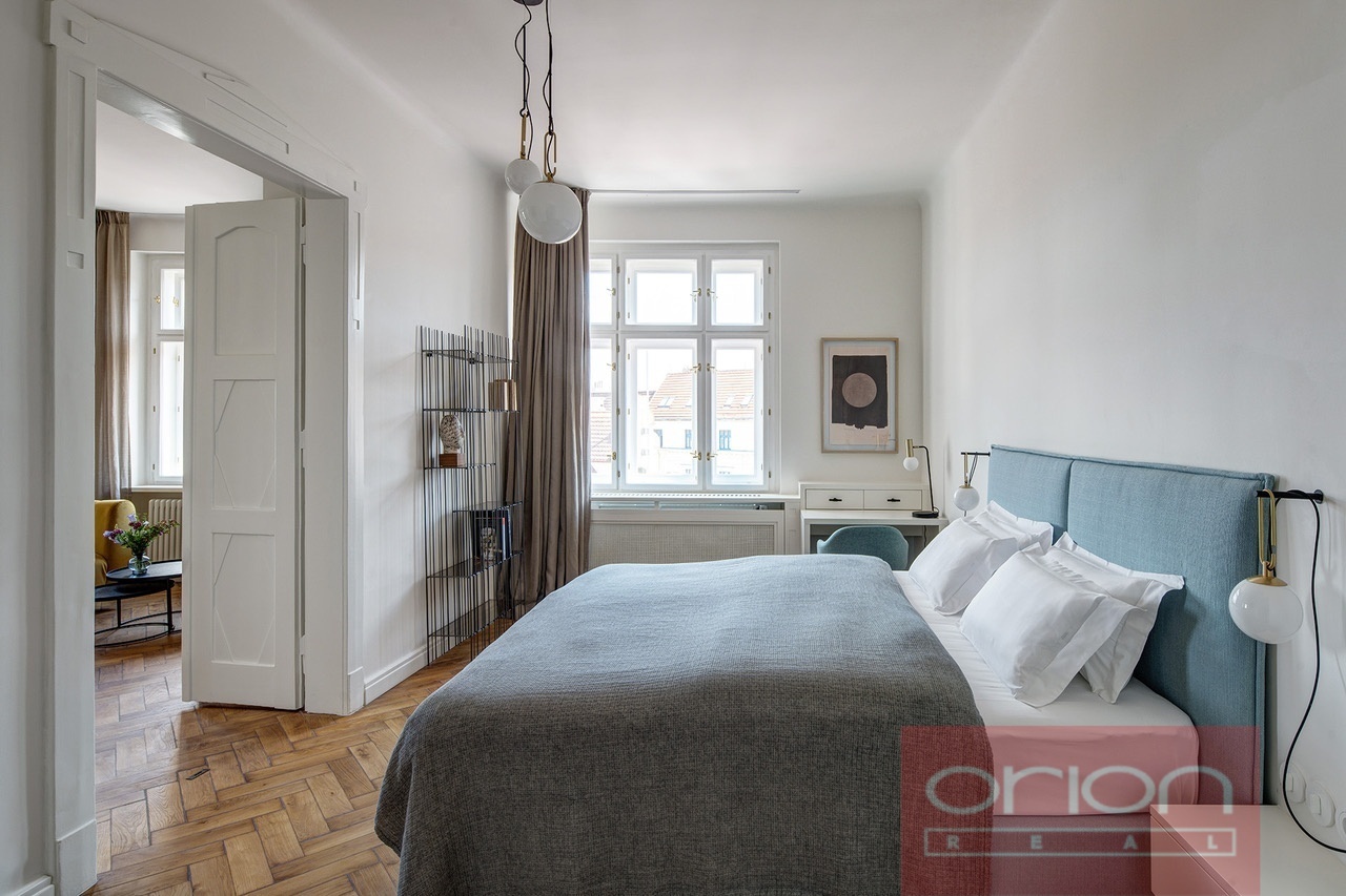 Nabízíme k pronájmu luxusní, plně zařízený byt 3+kk o velikosti 86 m² v bytovém domě s výtahem, nacházející se ve vyhledávané lokalitě Praha 6 - Dejvice, v krátké pěší vzdálenosti od stanice metra a tramvaje Hradčanská. Byt disponuje plně vybavenou kuchyní s jídelním koutem, prostorným obývacím pokojem, dvěma ložnicemi, šatnou, dvěma koupelnami se sprchovým koutem a toaletou a navíc samostatnou toaletou. K vybavení patří pračka, sušička, Wi-Fi a zabezpečovací systém. Na podlahách jsou kvalitní parkety. Z oken je krásný výhled na Dejvické střechy, oblíbený park Stromovka je vzdálen pouhých 10 minut pěšky. Lokalita nabízí kompletní občanskou vybavenost, množství restaurací, bister a lokálních obchodů. Výborná dopravní dostupnost jak MHD (metro i tramvaj 1 minutu chůze od domu), tak autem do centra města, na letiště i do mezinárodních škol.