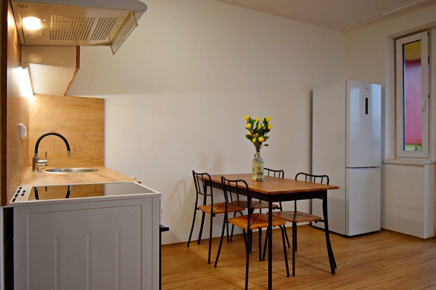 Velmi hezký a prostorný byt 1+kk s velkým, zaskleným balkonem ve starší novostavbě vzdálené 10 minut pěšky od stanice metra Vysočanská. Byt má pohledově oddělený kout na ložnici a je vybaven kuchyňskou linkou s lednicí a indukční varnou deskou, digestoří, barovým pultem + židle, skříňkami, v předsíni je šatní skříň. Prostorná koupelna s vanou je společná s WC a je vybavena pračkou. Velkou výhodou je prostorná komora na patře a blízká rekreační zóna podél říčky Rokytky. Kompletní občanská vybavenost v místě včetně Nákupního centra Fénix. Volné od 1.5.2026.
