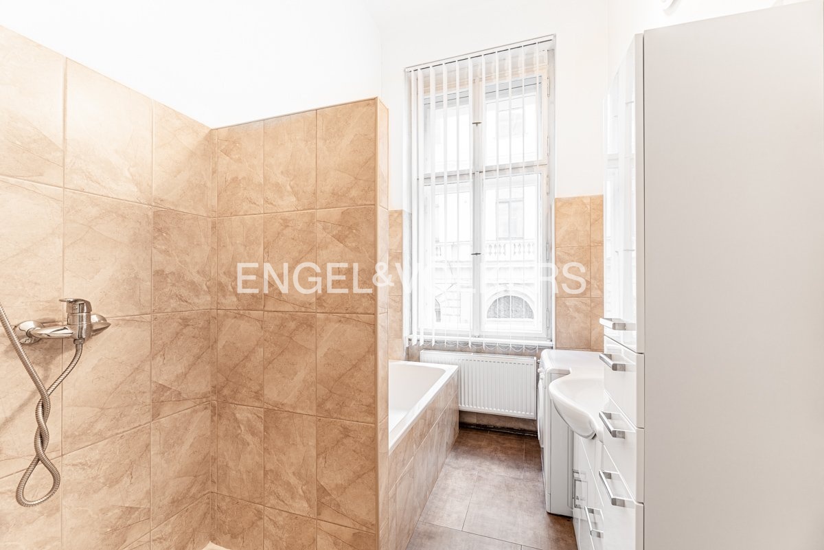V historickém rohovém domě postaveném v roce 1905 v centru Prahy je nyní k pronájmu prostorný byt s dispozicí 2+1, nacházející se ve druhém nadzemním podlaží. Byt se skládá ze sdílené vstupní chodby, ložnice, prostorného obývacího pokoje se vstupem na balkon, koupelny s pračkou, vanou a sprchovým koutem, samostatné toalety a plně vybavené kuchyně s myčkou.