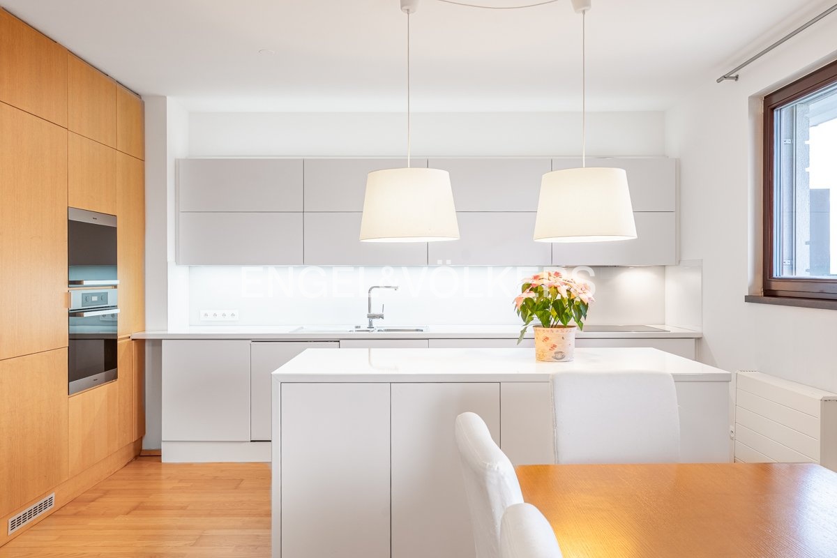 Nabízíme k dlouhodobému pronájmu praktický a prostorný byt o dispozici 4+kk v klidné rezidenční lokalitě. Byt se nachází v developerském projektu společnosti SKANSKA a svou lokalitou poskytuje dobrou dopravní dostupnost do centra díky lince metra C – Háje. Okolí nabízí také plnou občanskou vybavenost v podobě kaváren, obchodů, restaurací nebo parku Milíčovský les, který leží hned u rezidence. Byt disponuje plně vybavenou kuchyní s kvalitními spotřebiči, úložnými prostory, sklepní jednotkou, automatickými venkovními žaluziemi, terasou a balkonem. Součástí vybavení je také nábytek a pračka se sušičkou v koupelně.