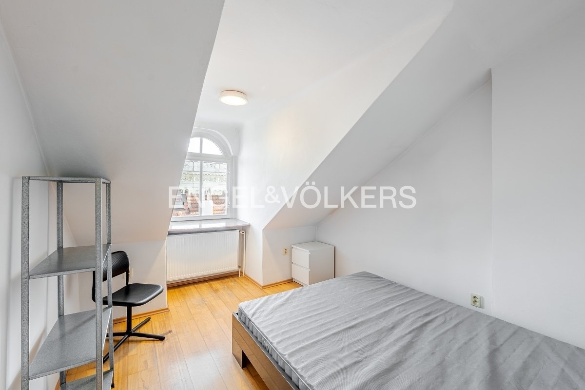 V bytě jsou přiznané podkrovní trámy, které dodávají bytu kouzlo a charakter půdní vestavby.