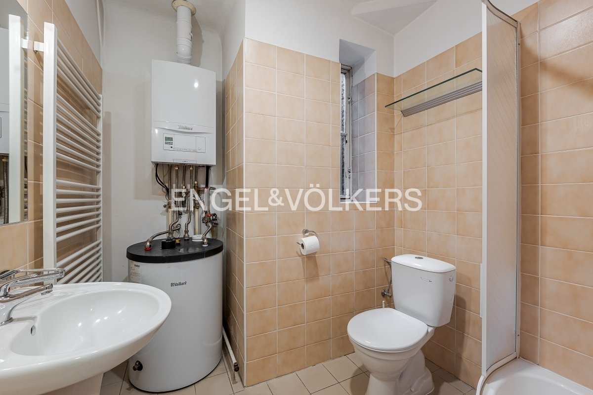 V hlavní koupelně je masážní vana s toaletou, kuchyně je plně vybavená spotřebiči. Byt dále disponuje menším samostatným pokojem s vlastním sprchovým koutem a toaletou.