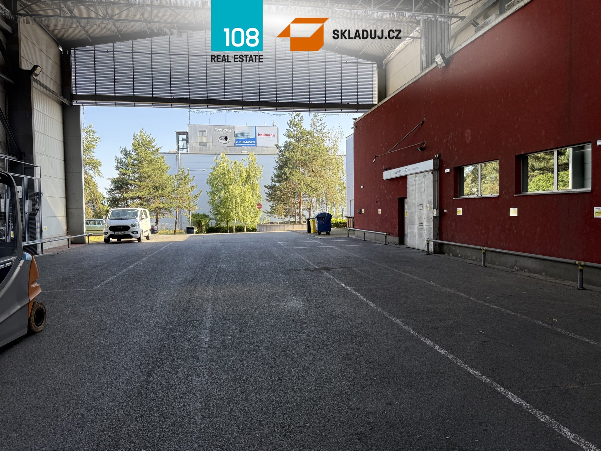 Na jedné straně je k dispozici 4x můstek pro TIR (1x s nůžkovou rampou pro dodávky), na druhé pak přímý vjezd, který je umístěn ve velkém krytém průjezdu. V prostorech je posílená elektroinstalace a je připraven rozvod stlačeného vzduchu. Vytápění zajišťují jednotky napojené na tepelné čerpadlo.