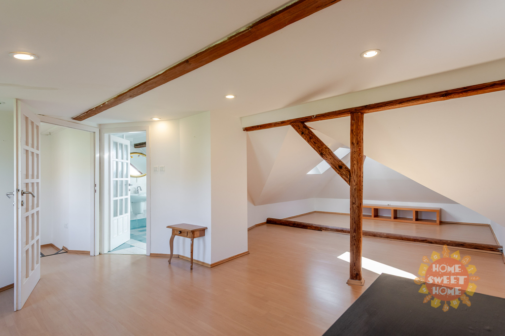 Další obývací pokoj (možno využít jako pracovnu či ložnici) a druhá koupelna se sprchovým koutem a toaletou.