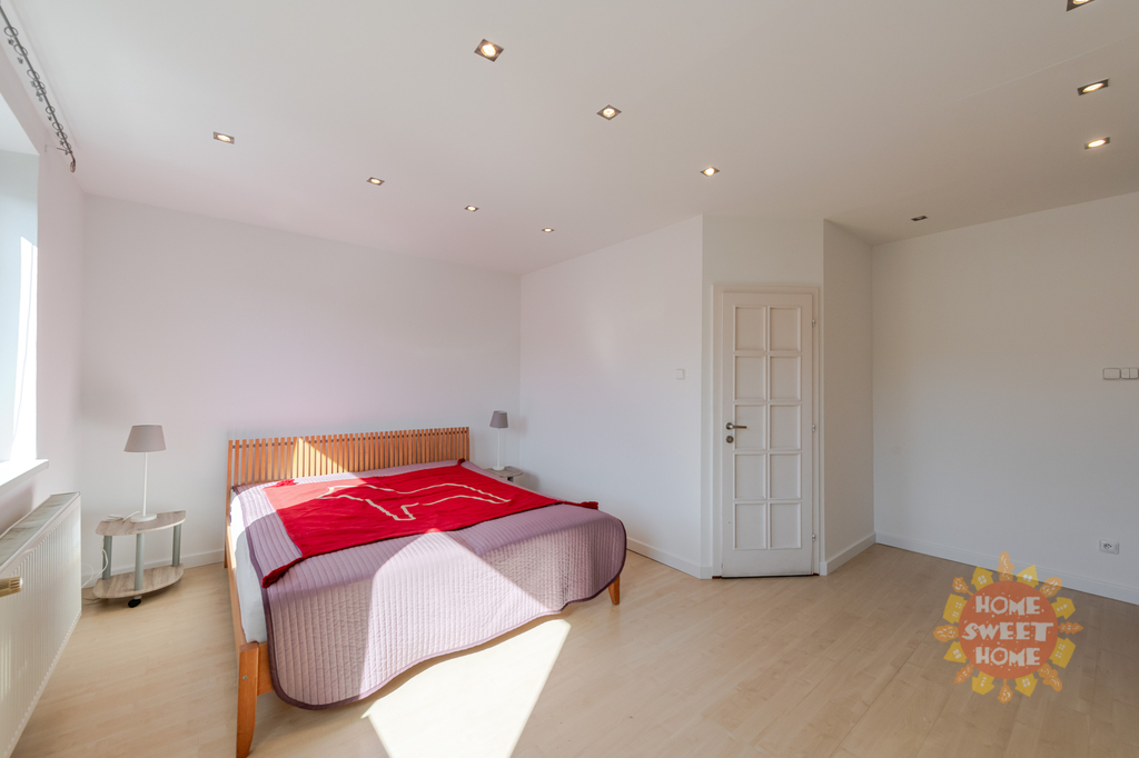 Hala, dvě ložnice, dvě šatny a koupelna s vanou a toaletou.