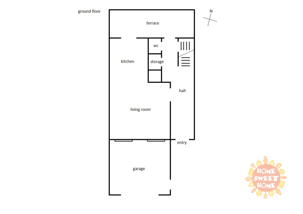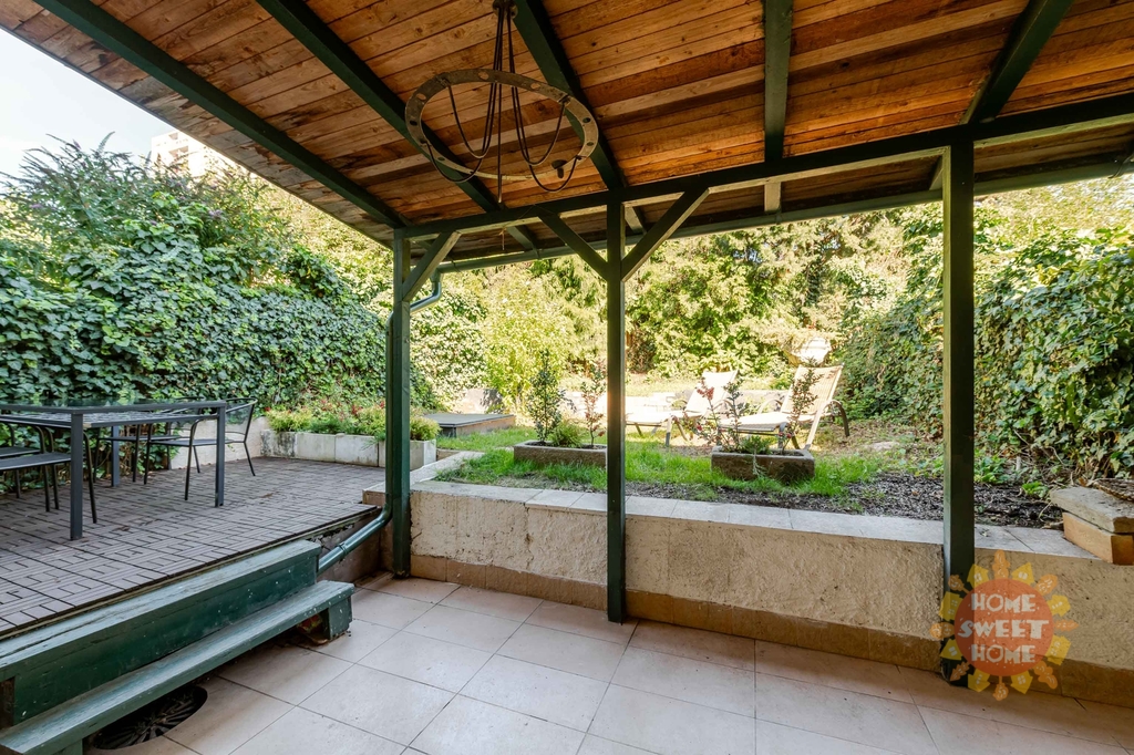 Plně vybavená kuchyně (kombinovaná lednice s mrazákem, sklokeramická varná deska, myčka, elektrická trouba), prostorný obývací pokoj, samostatná toaleta a komora. Z obývací části je přímý vstup na terasu a do udržované zahrady (cca 50 m²) s posezením pod širým nebem i pod zastřešenou pergolou.