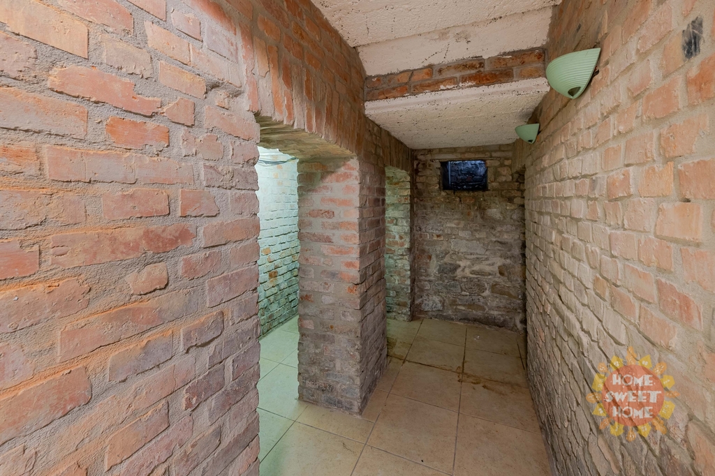 Technická místnost s pračkou, úložný prostor vhodný pro uskladnění potravin, možnost využití jako dílna či vinotéka.