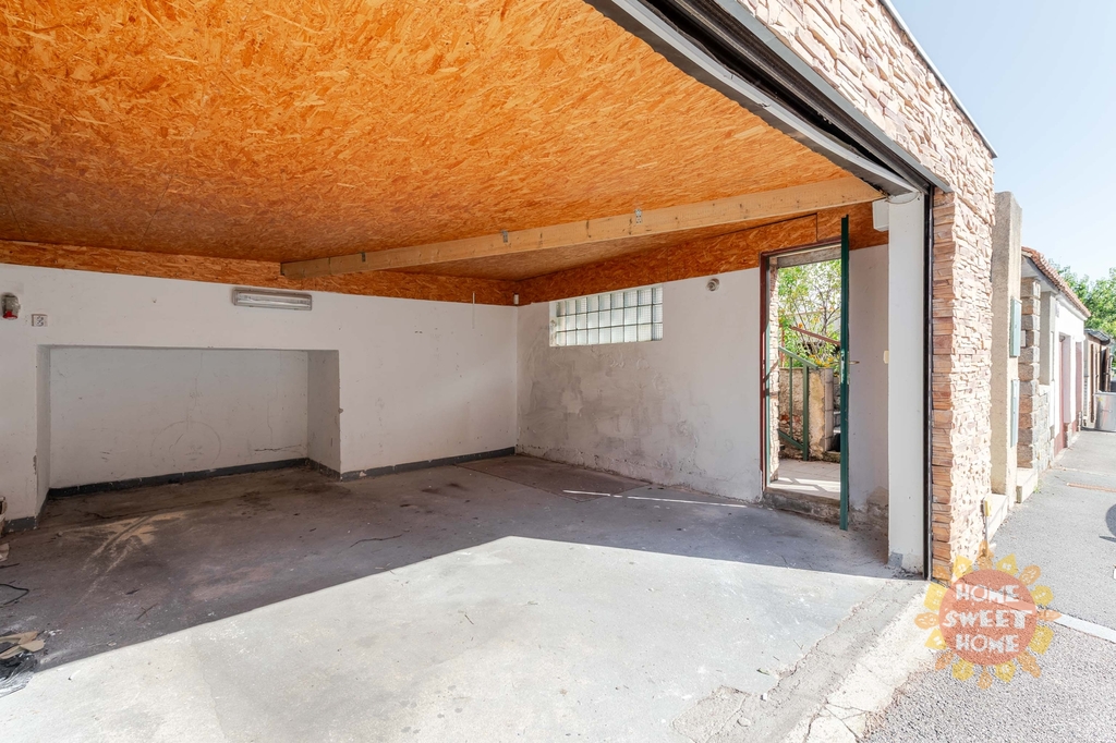 Součástí domu je prostorná garáž vhodná pro dvě menší auta nebo jedno větší vozidlo s motorkou či přívěsným vozíkem.