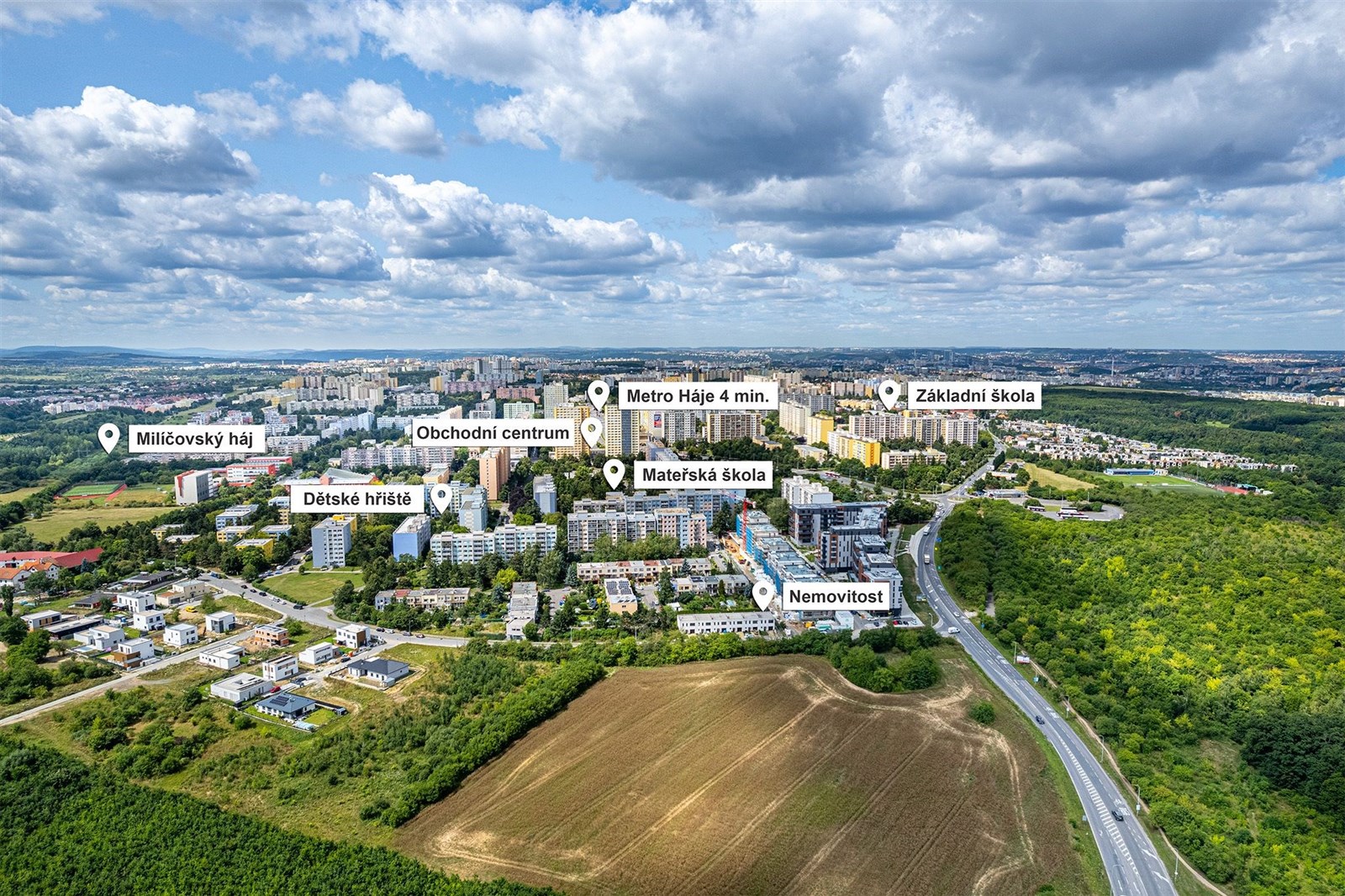 Vynikající dopravní dostupnost je zajištěna díky blízkosti autobusové zastávky, metra a hlavních dopravních tepen. Veškerá občanská vybavenost je na dosah – od obchodů, škol a školek, po lékařská zařízení, restaurace a kulturní instituce.