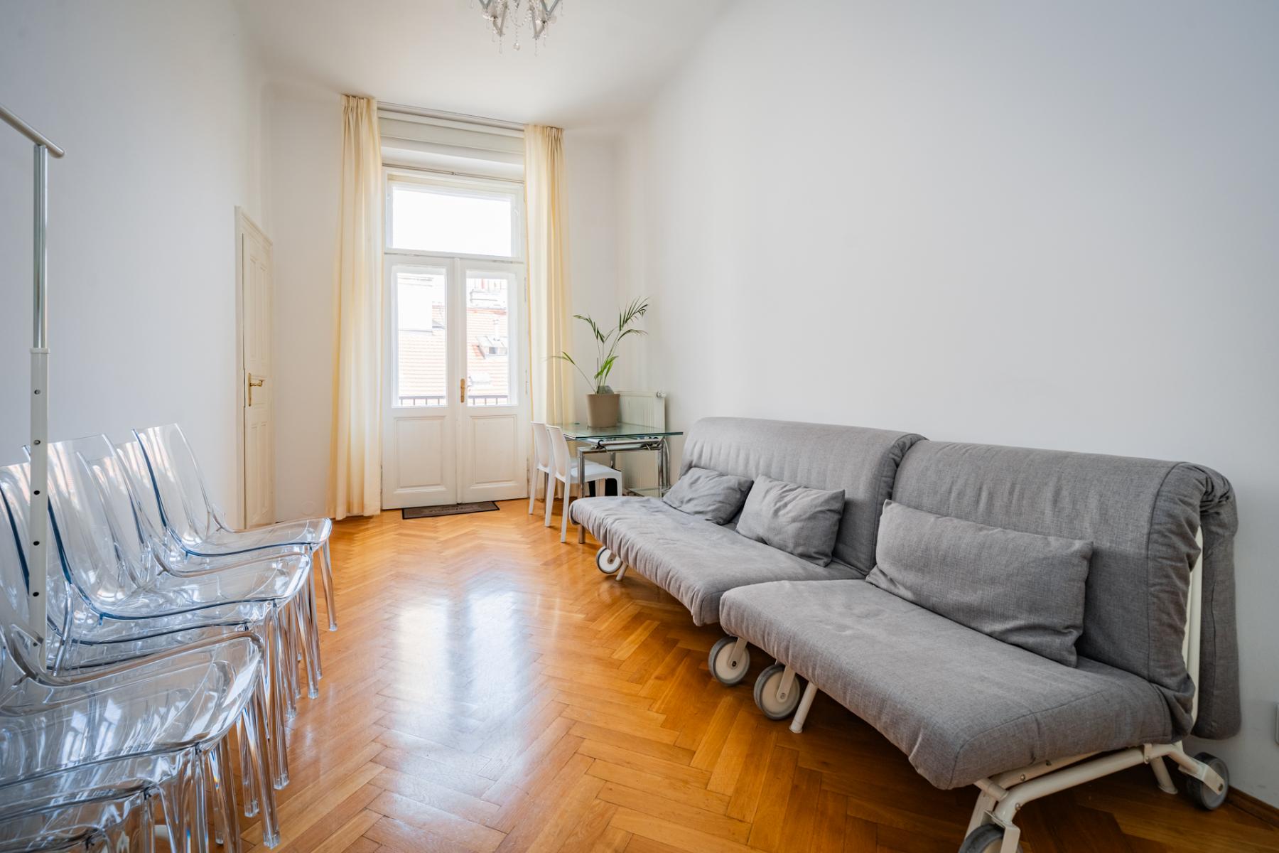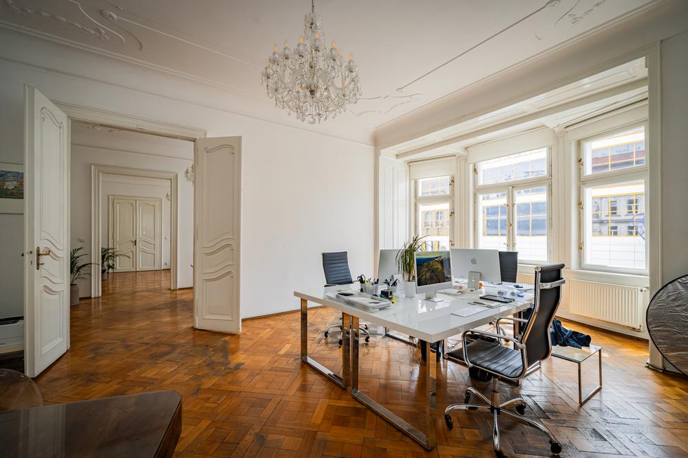 Dovoluji si Vám nabídnout k pronájmu prostorný reprezentativní byt 5+1 s malým balkonem s možností využití jako kanceláře v centru Prahy v ul. Na Perštýně. Byt se nachází v těsné blízkosti zastávky Národní třída a Můstek, přímo u obchodního domu Máj a Quadrio.