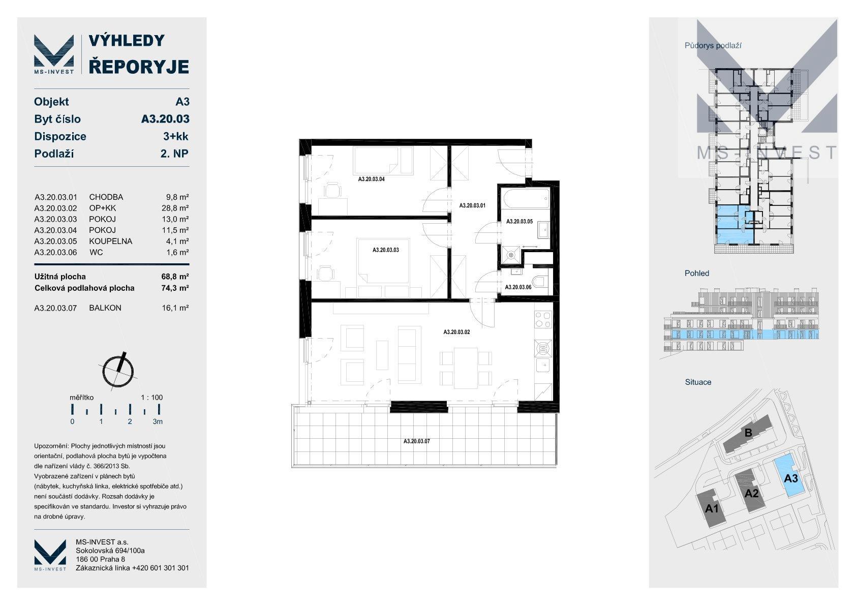 | Dispozice/podlahová plocha: | 3+kk/74 m² |