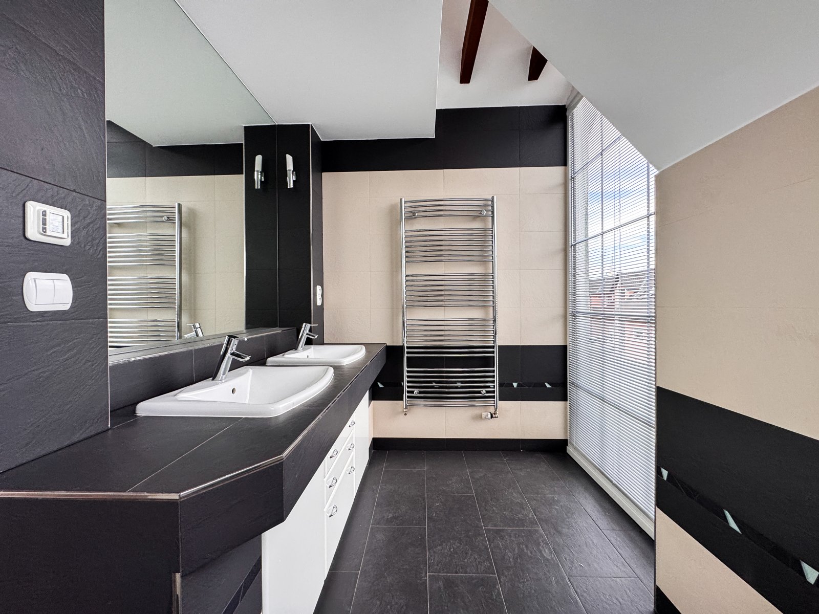 • patro: tři samostatné pokoje (cca 19 m², 18 m² a 15 m²), z jednoho pokoje vstup na balkon a klimatizační jednotka, koupelna s vanou a dvěma umyvadly, druhé WC