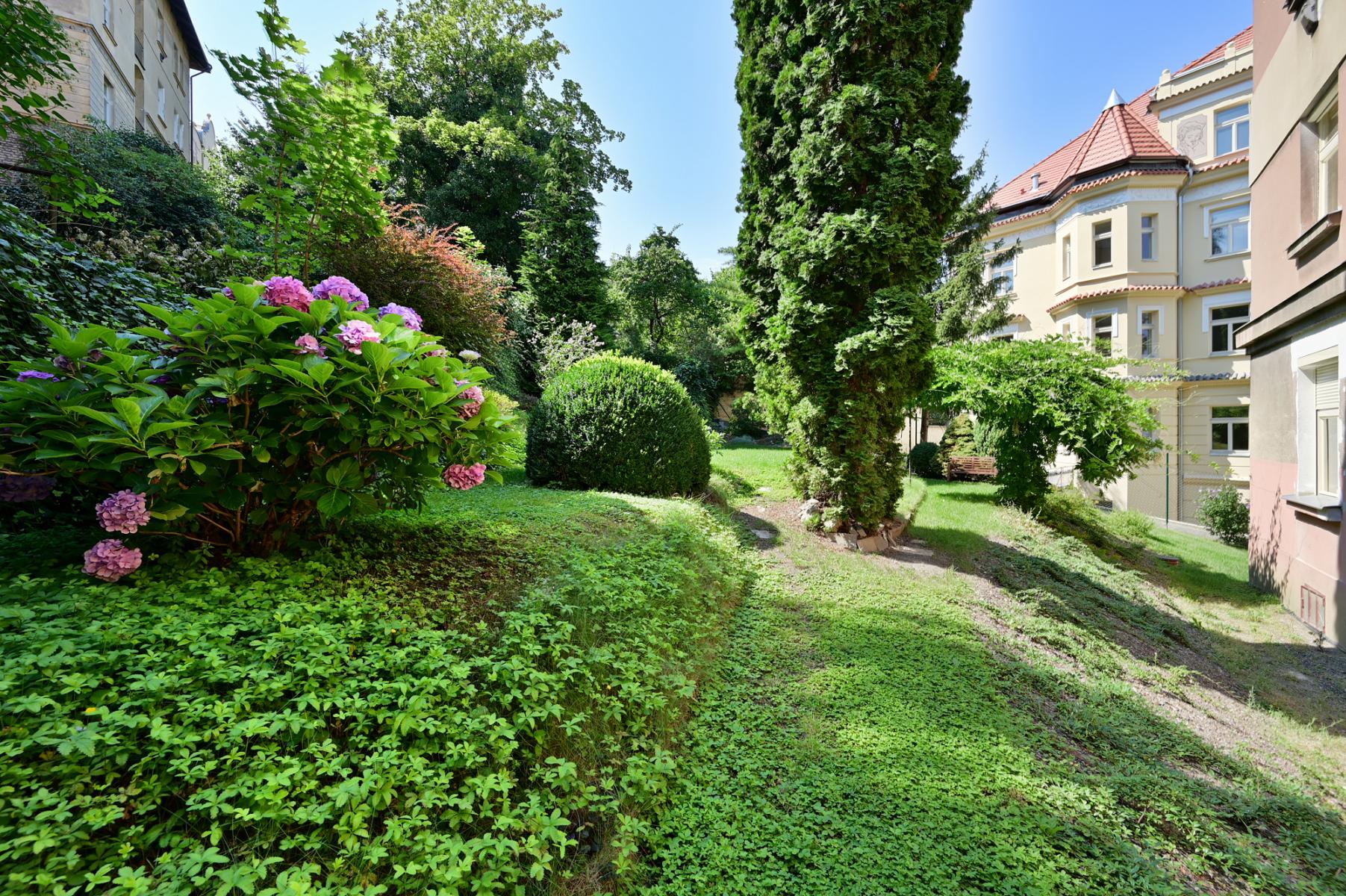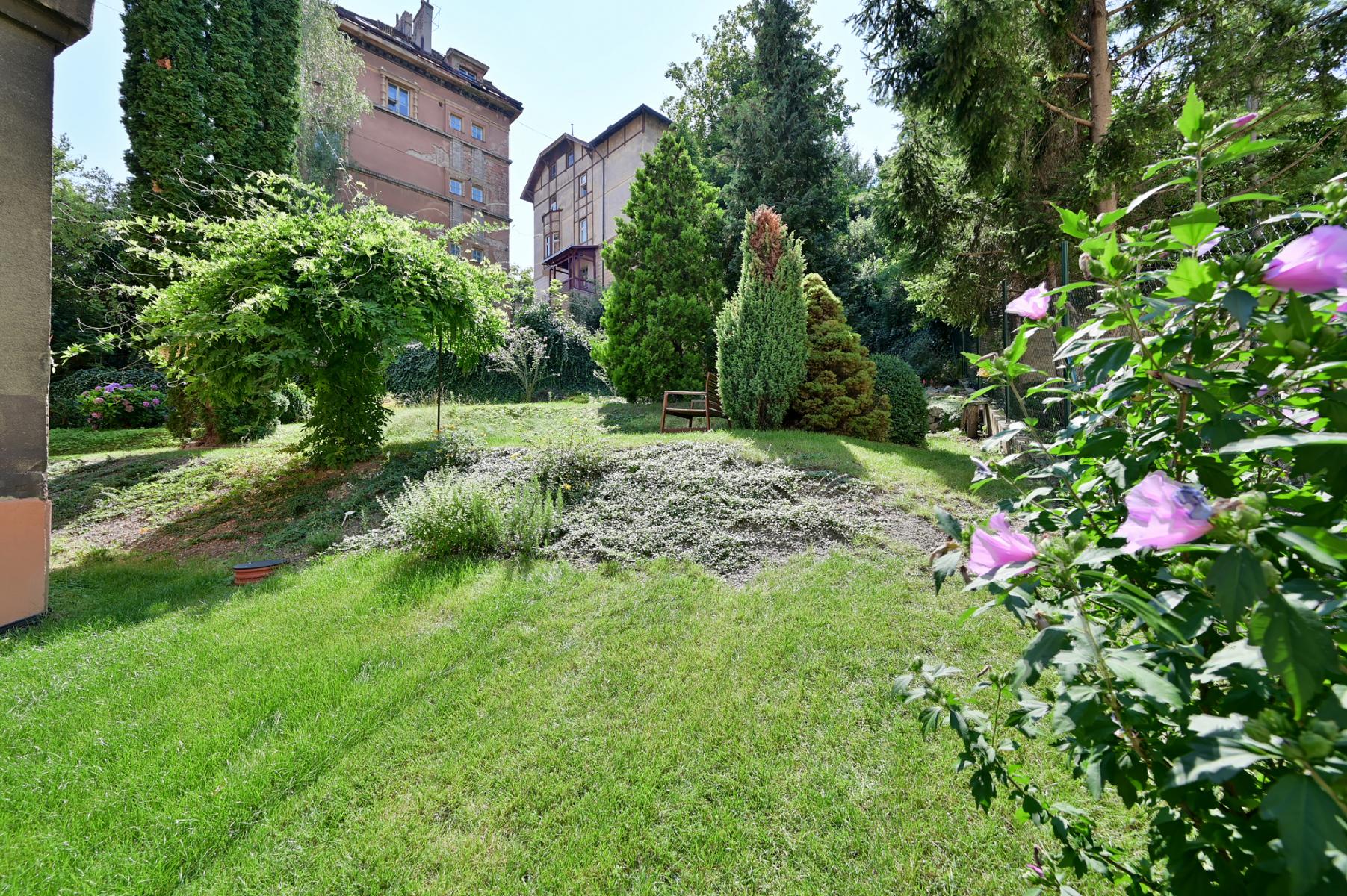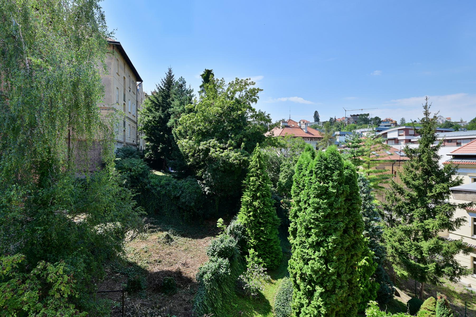 Nová rekonstrukce byt 1+kk s jihozápadními okny do zahrady, která je přístupná pro obyvatele domu. Velmi tichý byt, stejně tak se v celém domě dbá na klid.