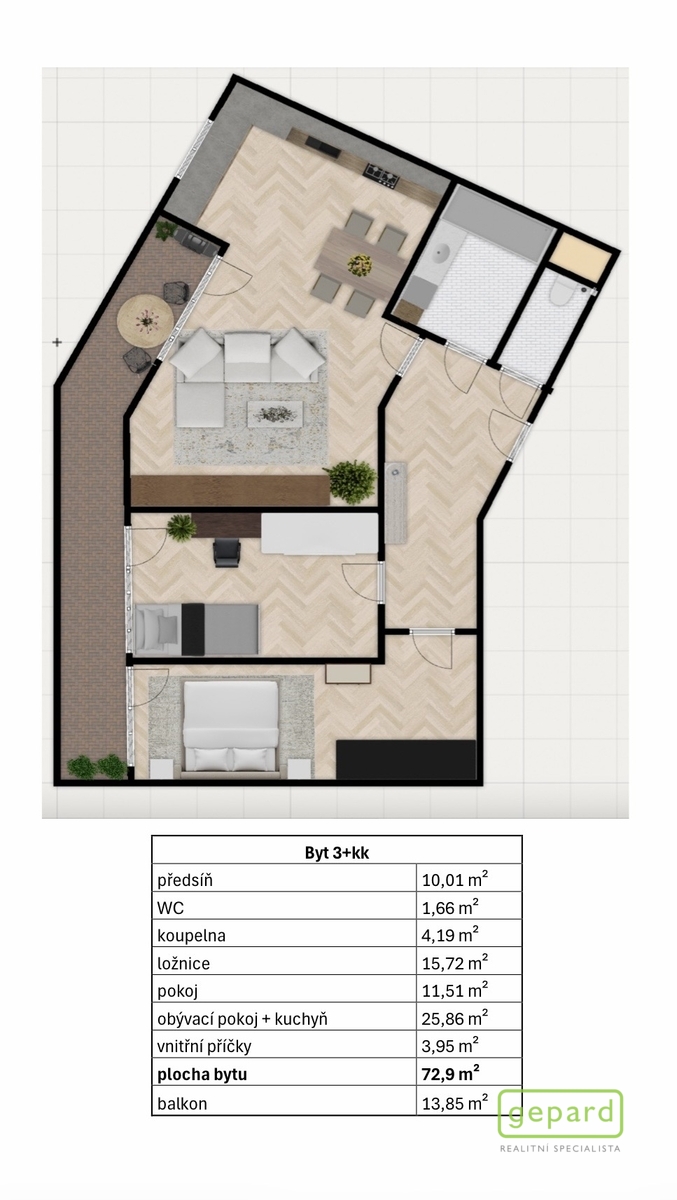 | Dispozice/podlahová plocha: | 3+kk/83 m² |