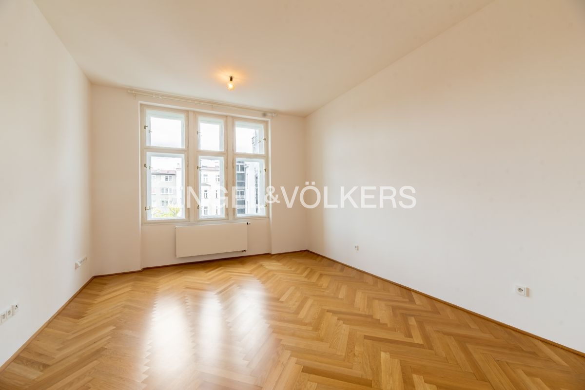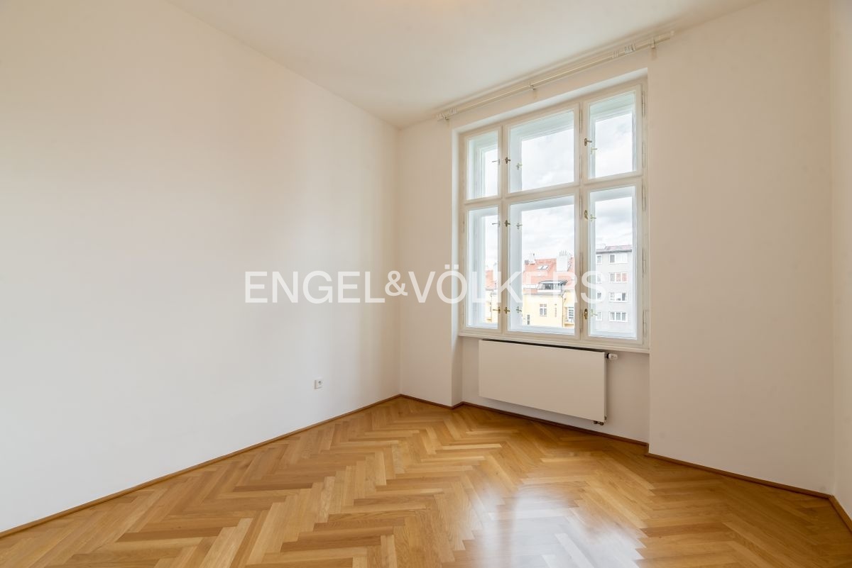 K okamžitému pronájmu je připraven prosvětlený a prostorný byt v kompletně zrekonstruovaném domě. Rekonstrukce striktně zachovala veškeré původní architektonické a dekorační prvky secese a to jak na fasádě, tak ve společných prostorách domu. Byt se nachází ve čtvrtém nadzemním podlaží domu s výtahem. Srdcem celého bytu je prostorný obývací pokoj se štukovými stropy, který je propojený s moderní kuchyní vybavenou veškerými spotřebiči. Z hlavního obytného prostoru jsou nádherné výhledy na kostel sv. Ludmily a Divadlo na Vinohradech. Dvě samostatné a neprůchozí ložnice jsou orientovány do tichého vnitrobloku. K dispozici je koupelna se sprchovým koutem i vanou, samostatná toaleta a technická místnost. V domě se nachází sklepní kóje, která poskytuje další úložný prostor. Vyhledávaná lokalita v sobě pojí výbornou dopravní dostupnost s plnou občanskou vybaveností díky nedalekému náměstí Míru a s velké množství volnočasových aktivit.