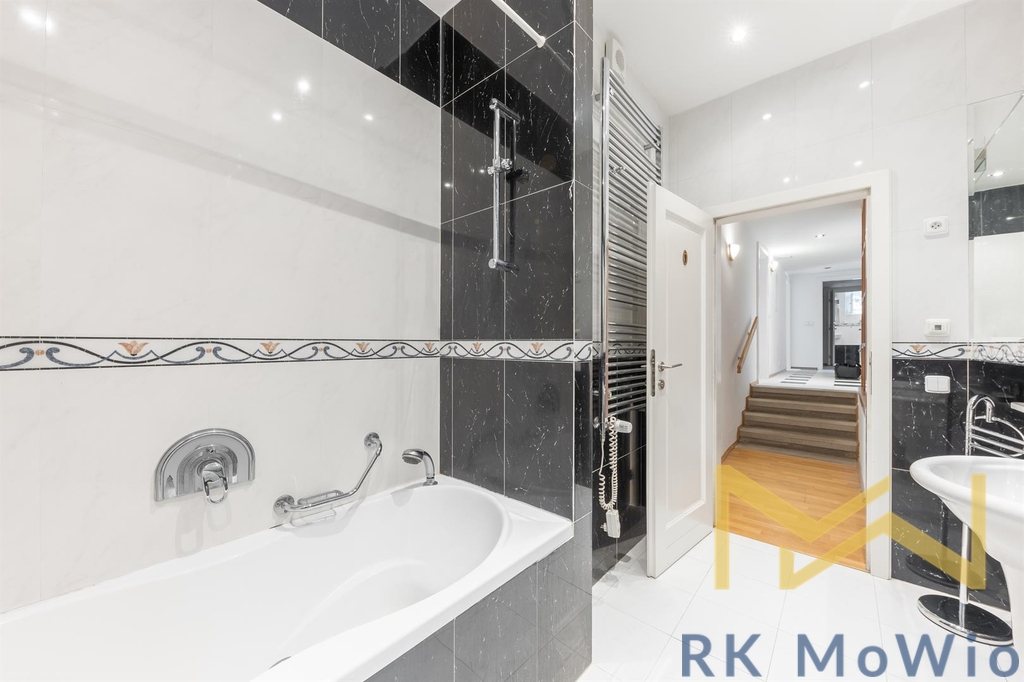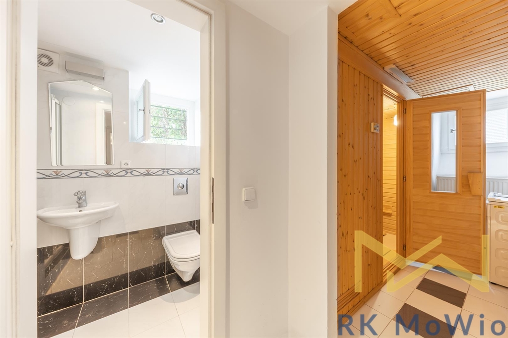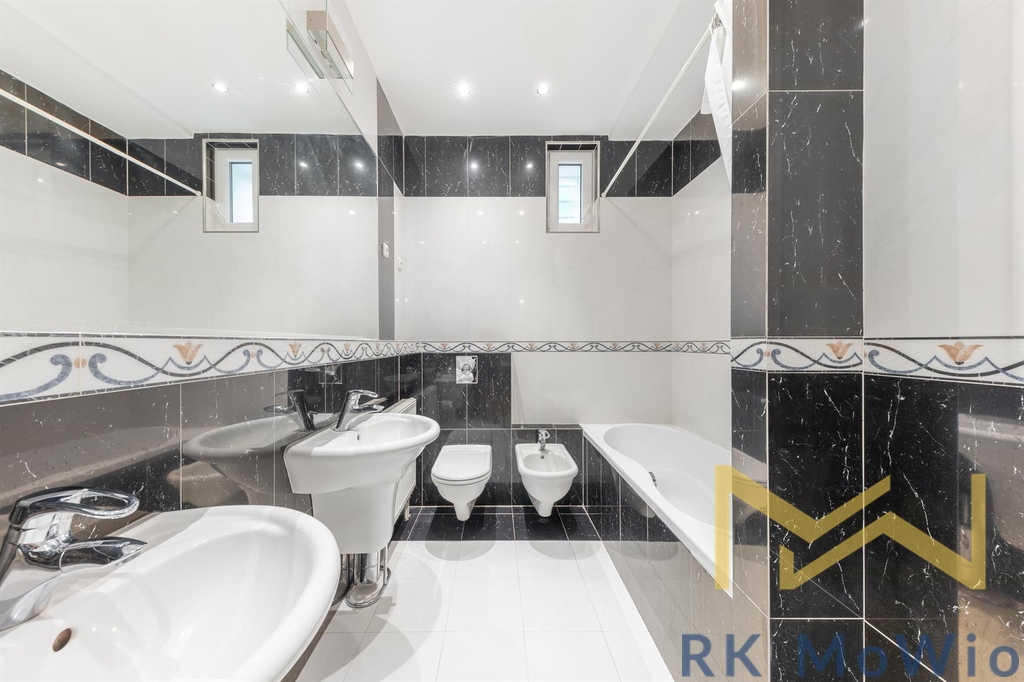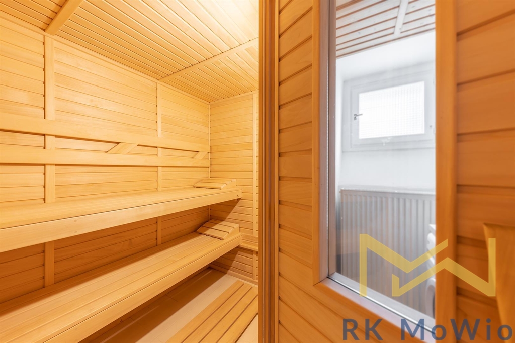 Půdorys bytové jednotky nabízí vstupní chodbu, vzdušnou kuchyň s jídelní částí a se vstupem do zimní zahrady, 1 obývací pokoj, 1 ložnice, 2 koupelny (1x s vanou, dvěma umyvadly, bidetem a toaletou; 1x se sprchou, umyvadlem a toaletou), saunu a technickou místností. Vybavení bytu: kuchyňská linka (včetně lednice s mrazákem, sklokeramické varné desky, digestoře, myčky, elektrické a mikrovlnné trouby), klimatizace, vestavěné skříně, pračka, příprava pro vysokorychlostní internet, dřevěné podlahy a dlažba. Součástí pronájmu jsou 2 vyhrazená parkovací stání na zahradě. Možnost užívání společné zahrady o velikosti 1850 m². Byt je vhodný pro 2 maximálně 3 osoby.