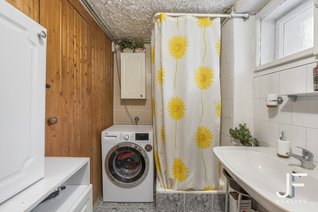V suterénu je také je samostatná toaleta přístupná ze společných prostor a místnost, kterou lze rekonstruovat a pronajmout jako skromný atelier.