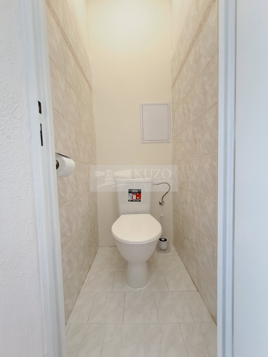 Byt je po částečné rekonstrukci. Obývací prostor s kuchyňskou linkou tvoří příjemný celek, kde snadno spojíte vaření, odpočinek i práci. Součástí linky je varná deska, digestoř, pračka a lednice, vše úplně nové – stačí se jen nastěhovat. Zděné jádro nabízí koupelnu se sprchou a samostatné WC. V předsíni je vám k dispozici vestavěná šatní skříň, díky které zůstane zbytek bytu vzdušný a uklizený.