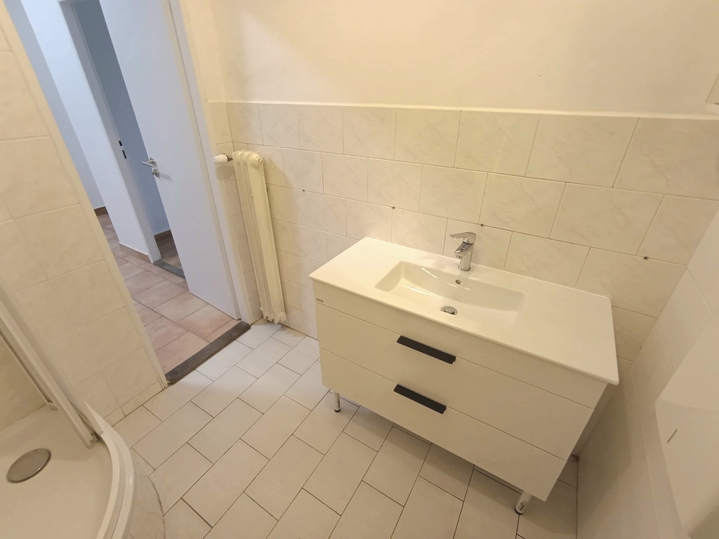 Prostor se skládá ze vstupní místnosti a dalších 3 neprůchozích místností, do kterých je vstup z prostorné haly, která umožňuje také vstup do kuchyňského koutu, koupelny se sprchovým koutem, umývadlem a WC a do 1 dalšího samostatného WC s umývadlem. Na podlaze je plovoucí podlaha a dlažba. Topení je etážové - vlastní plynový kotel, který zajišťuje vytápění celého prostoru. Ohřev vody je el. bojlerem. Parkování je možné na ulici (modré zóny) nebo na přilehlém placeném parkovišti.