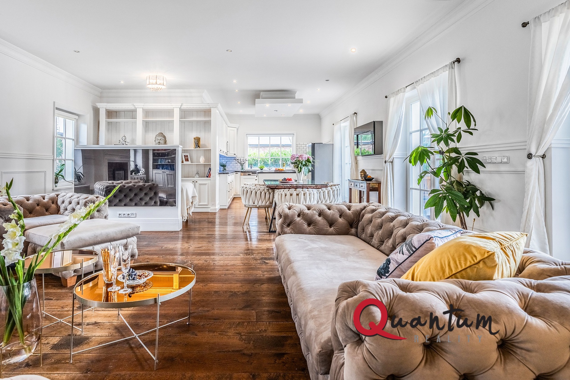 Kvalitní materiály a stylové provedení – fasáda v anglickém stylu, elegantní detaily a propracovaný interiér, který zachovává styl domu.