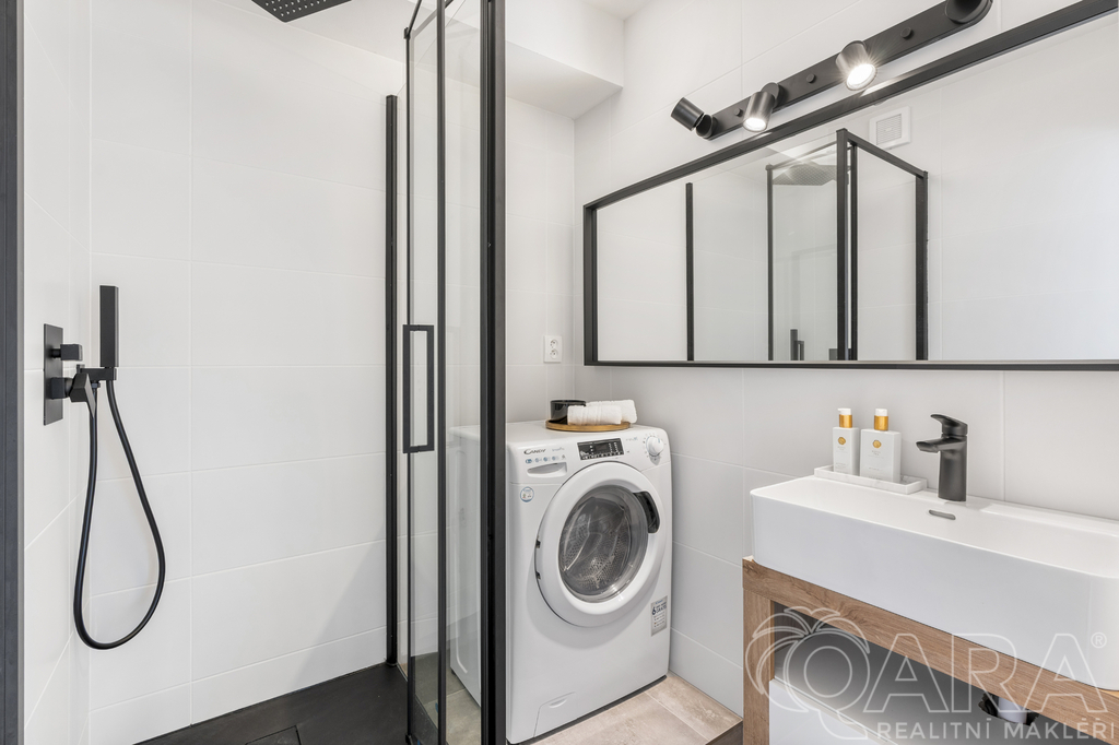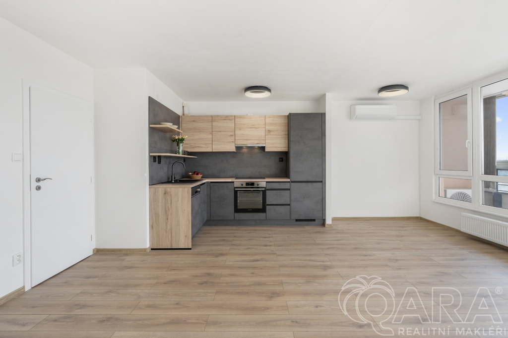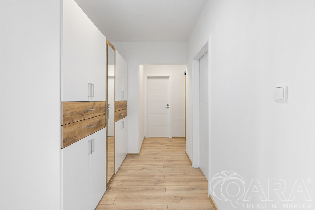 Interiér prošel kompletní rekonstrukcí v roce 2025. Kvalitní kuchyňská linka je vybavená vestavnými spotřebiči (indukční deska, trouba, myčka, digestoř, lednice s mrazákem), koupelna má moderní design se sprchovým koutem, toaleta je oddělená.