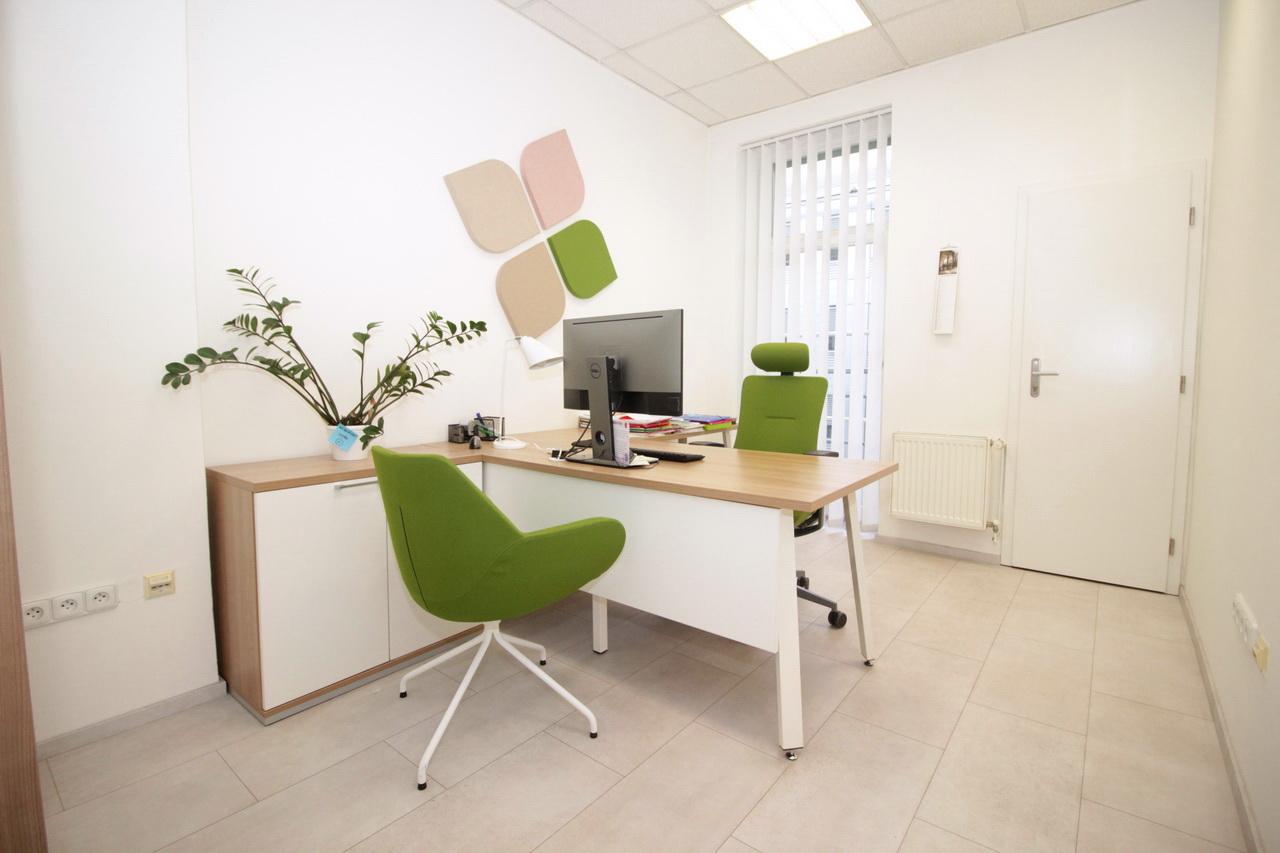 Na podlahách jsou moderní světlé vinylové desky a v části zátěžový koberec, kanceláře budou nově vymalované.