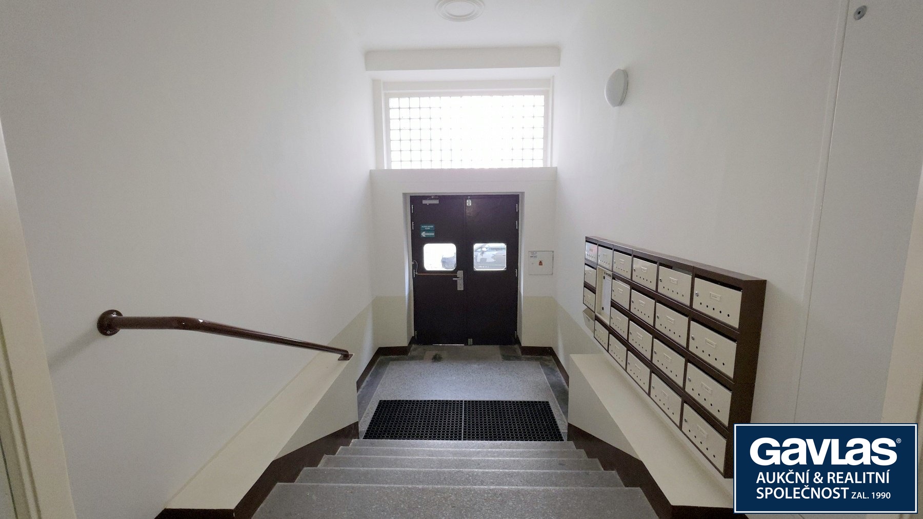 Byt se nachází v 1. patře domu, které je přístupné po schodech a uzamčeno mříží.