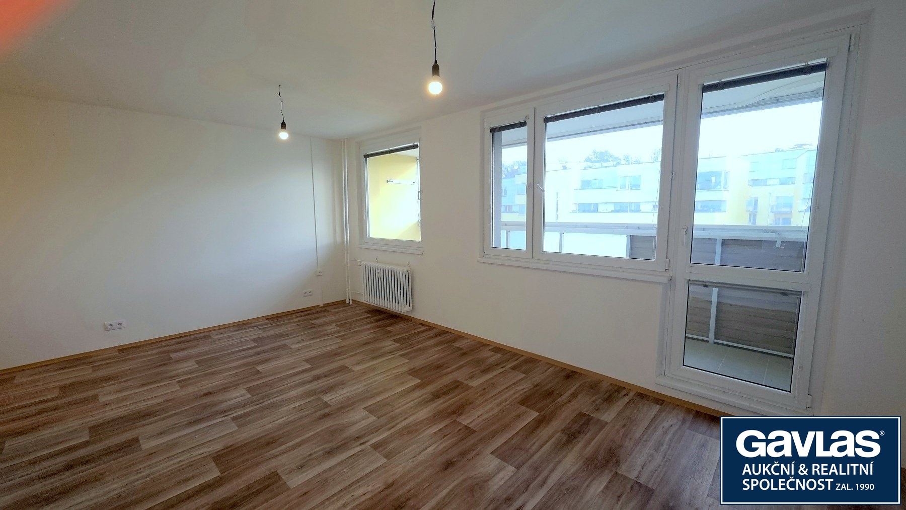 Dispozice: z chodby domu se vchází do předsíně, ze které jsou vstupy do dalších místností bytu. K pokoji přiléhá po celé délce zasklená lodžie orientovaná na jih do ulice Jeseniova.